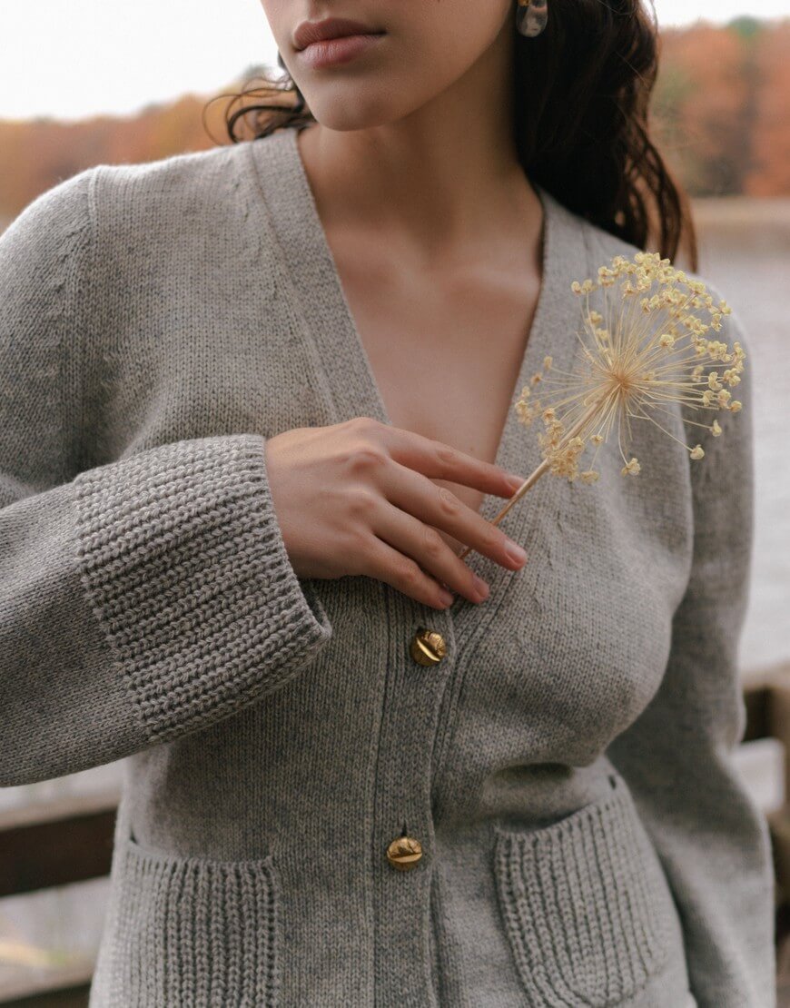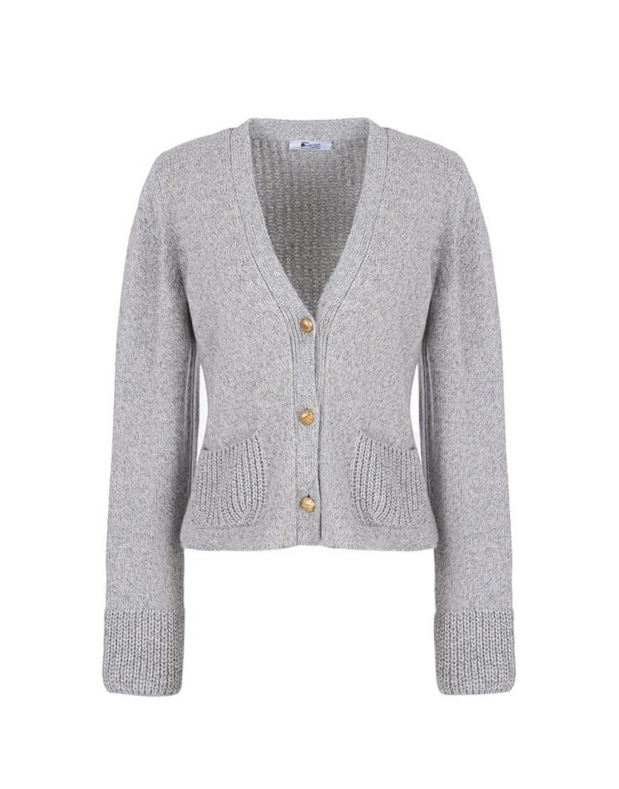 Кардиган з декоративними ґудзиками, приталений крій, застібається на ґудзики, V-подібний виріз, дві накладні кишені