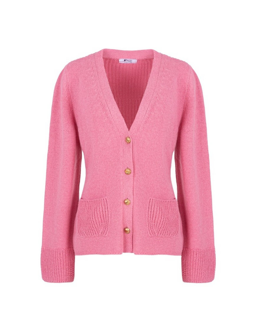 Кардиган з декоративними ґудзиками, приталений крій, застібається на ґудзики, V-подібний виріз, дві накладні кишені