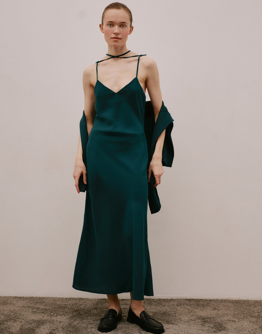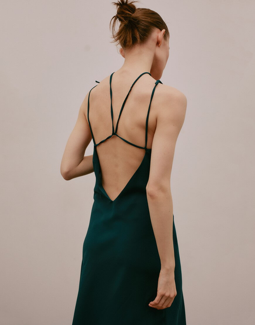 Сукня міді на бретелях, розкльошений крій, відкрита спина