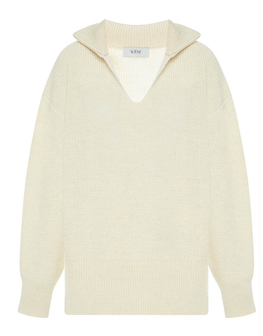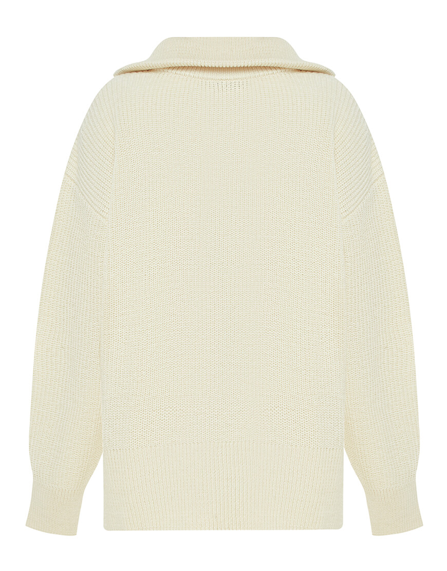 В’язаний светр оверсайз з відкладним коміром, виконаний об’ємною фактурною в’язкою