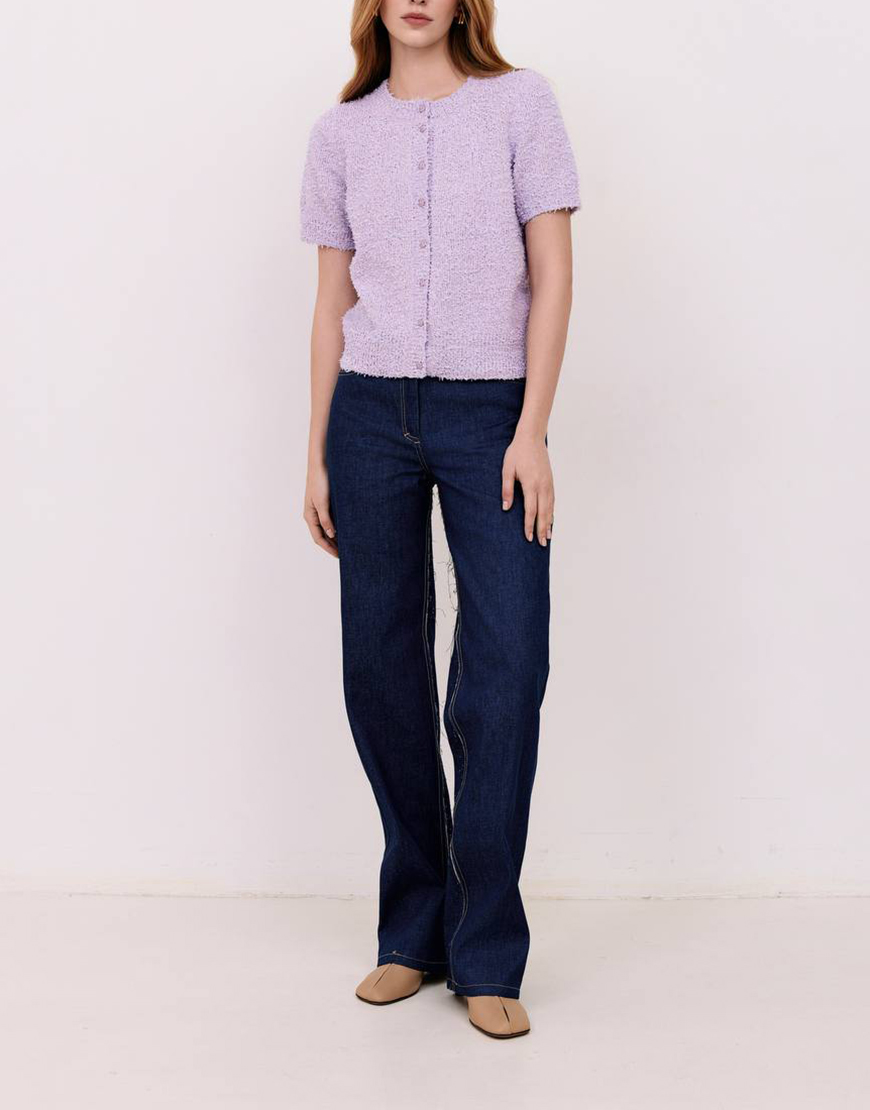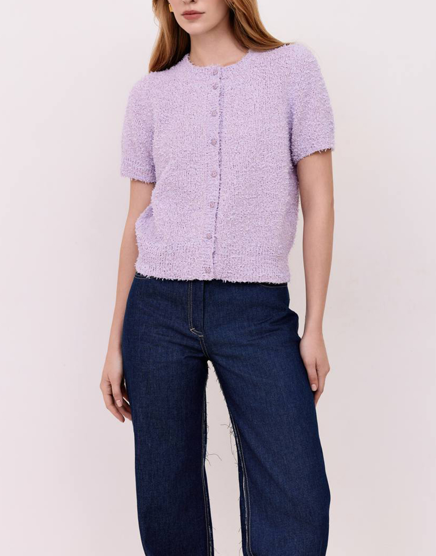 Бавовняний кардиган із застібкою на ґудзики, вільний крій, круглий виріз, короткі рукави