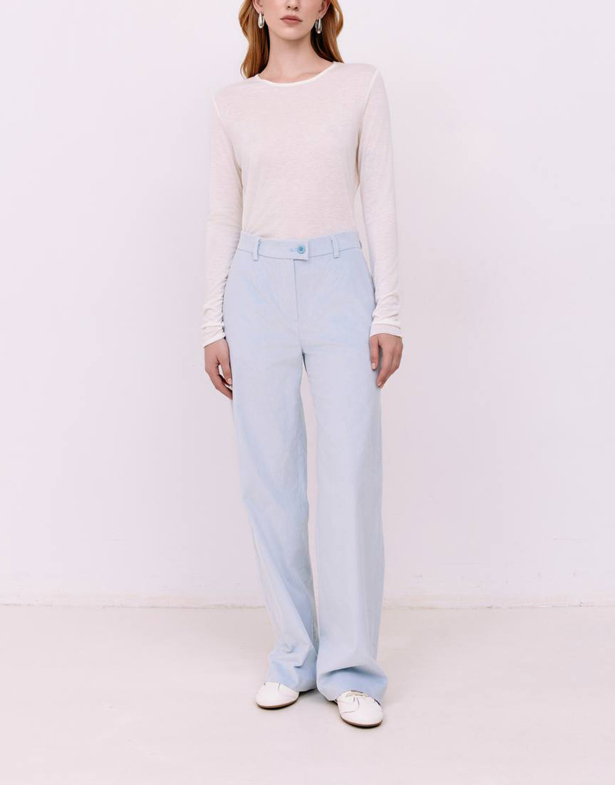Брюки з середньою посадкою, прямий крій, застібаються на блискавку і ґудзик, дві бічні кишені