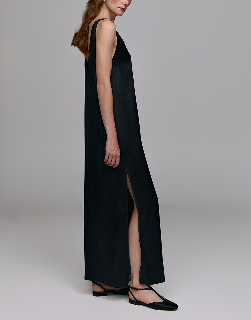 Сукня максі з розрізами на боках, прямий крій, без рукавів, оздоблена сіткою