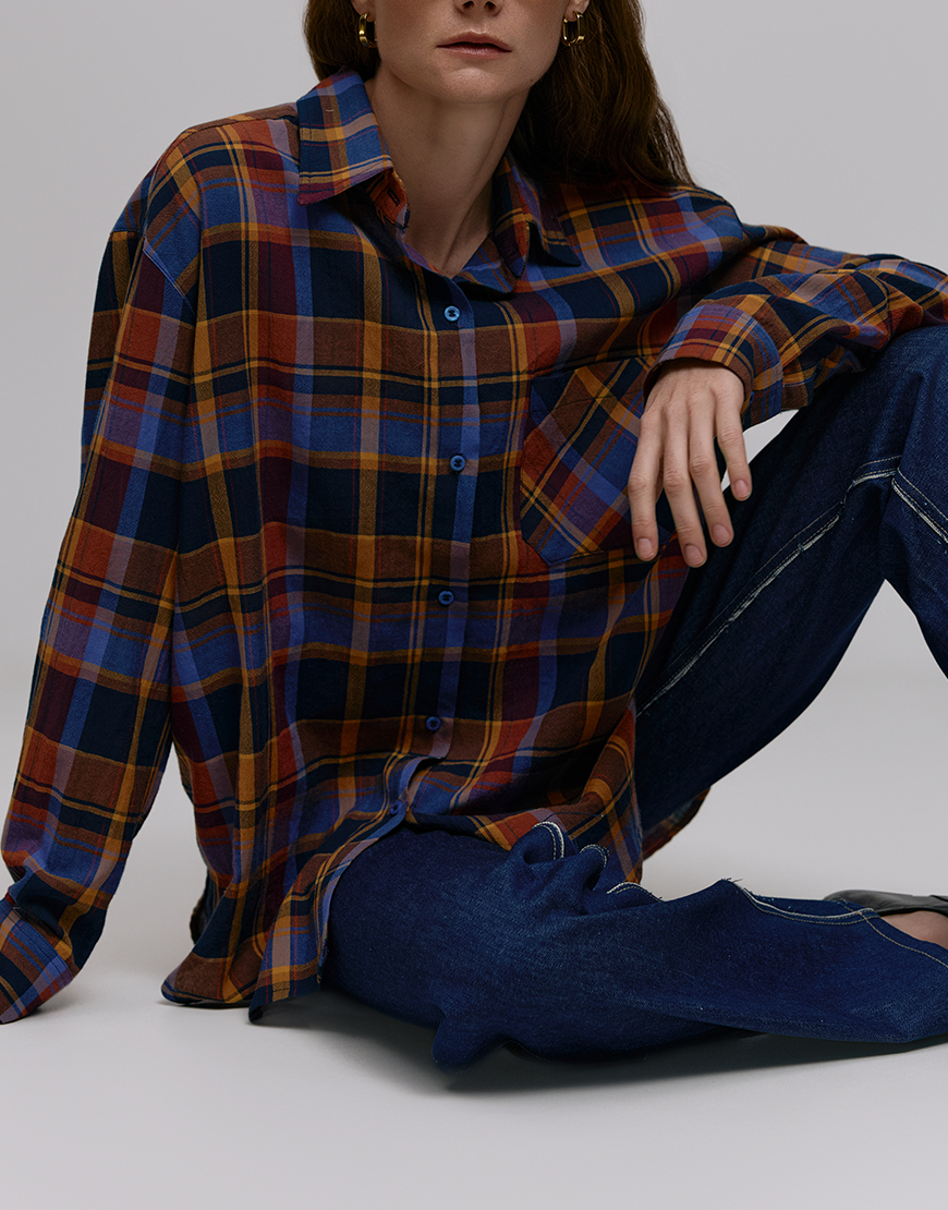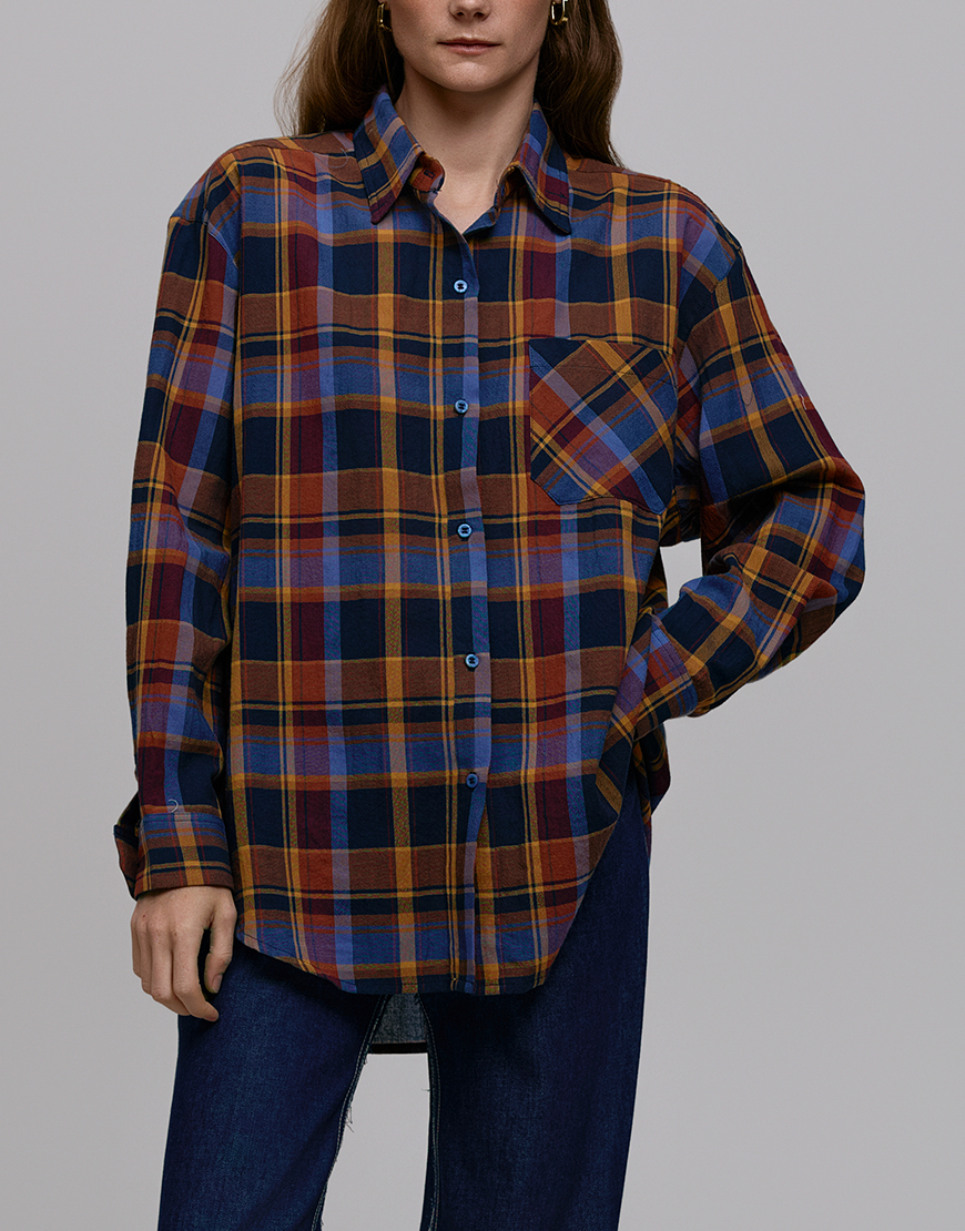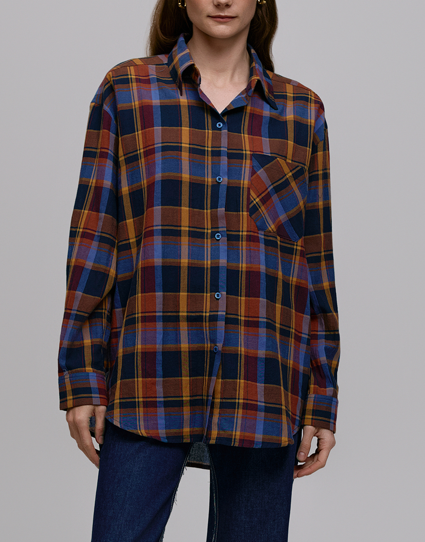Доставка впродовж 2-5 робочих днівСорочка оверсайз в клітинку, класичний комір, одна накладна кишеня, манжети на ґудзиках, застібається на ґудзики спереду