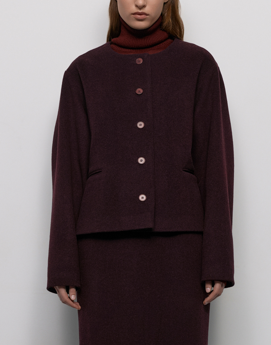 Коротке пальто з вовни, круглий комір, застібається на ґудзики спереду, дві бічні кишені, широкі рукави, підкладка з віскози