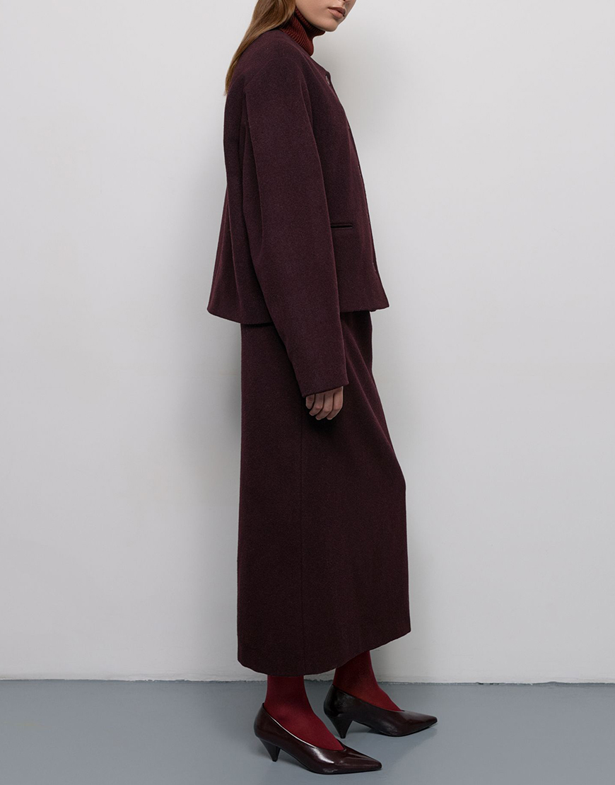 Спідниця максі з вовни, приталений силует, застібається на приховану блискавку ззаду, шліца ззаду, підкладка з віскози