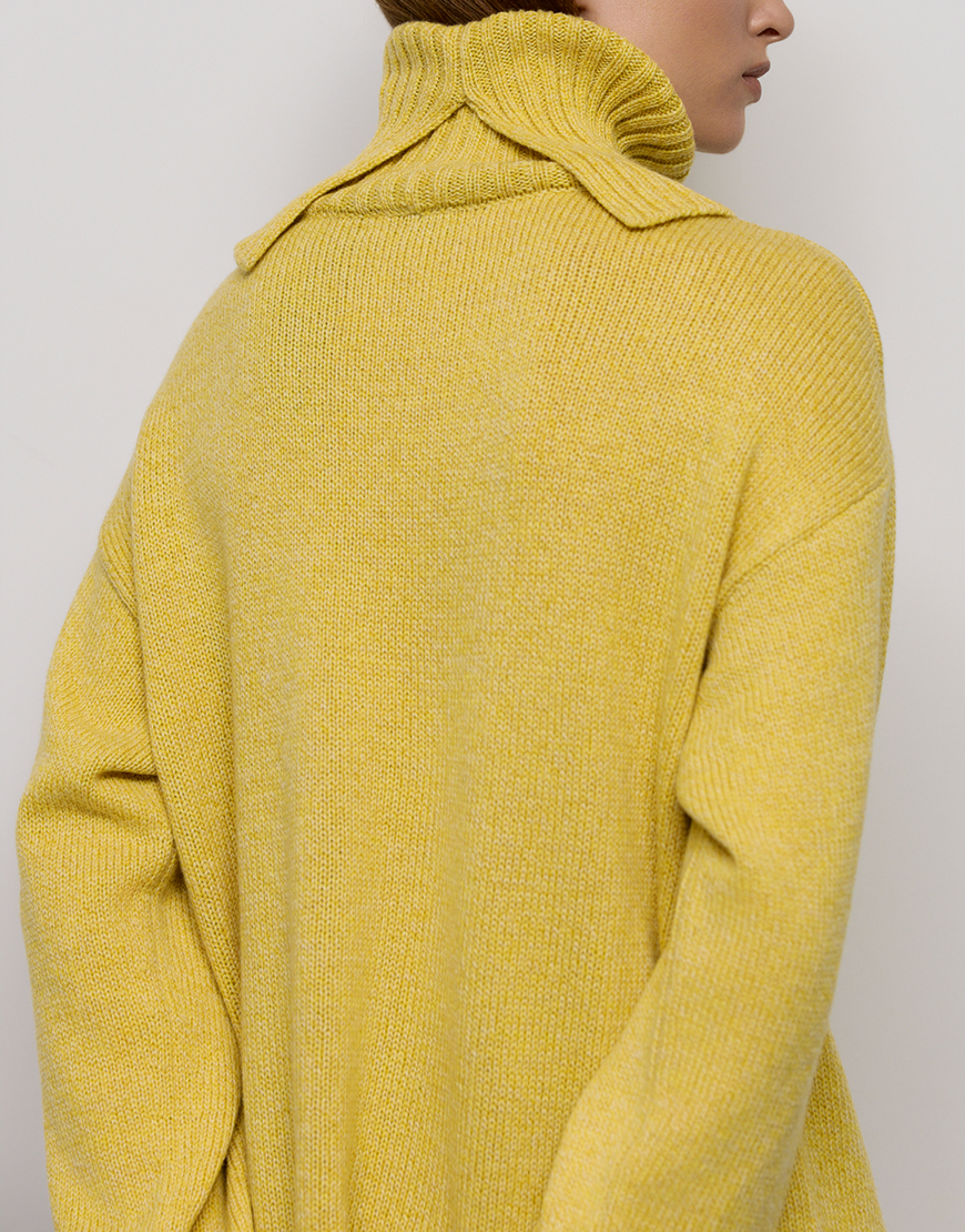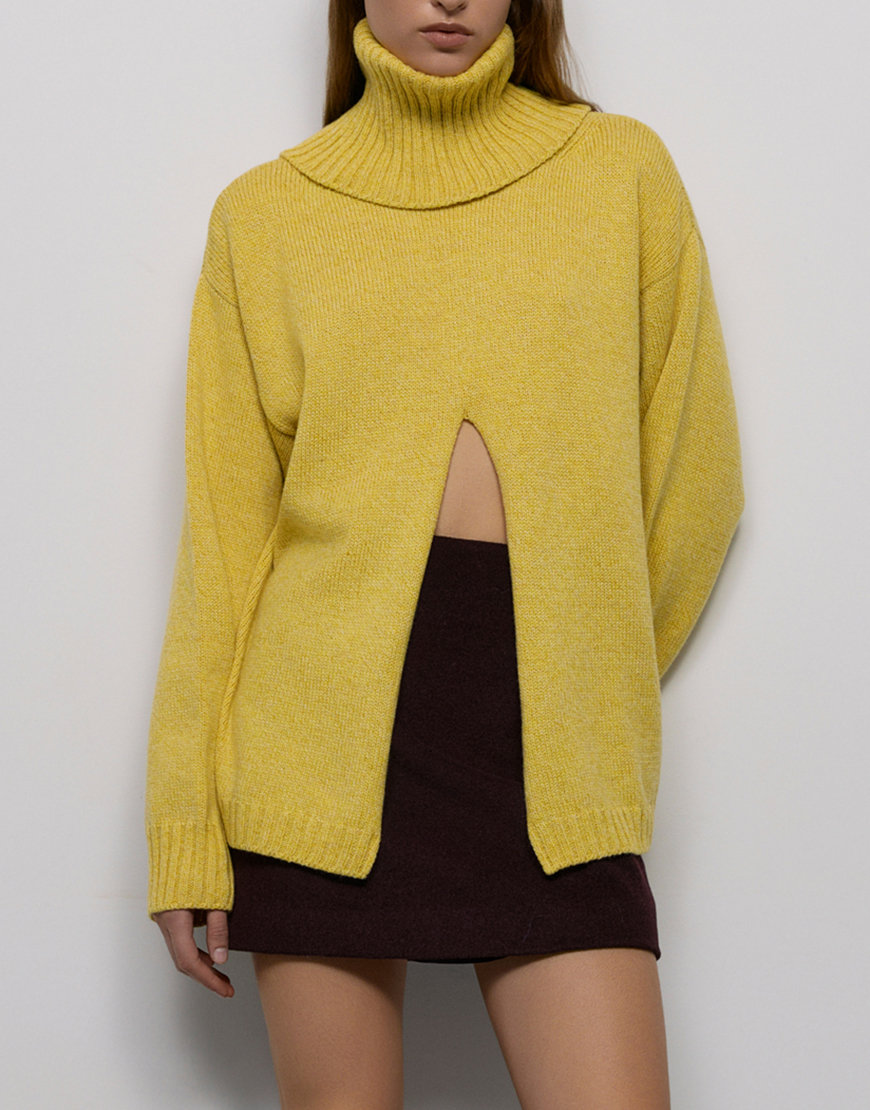 В’язаний светр вільного силуету з високою горловиною, розріз спереду, довгі рукави