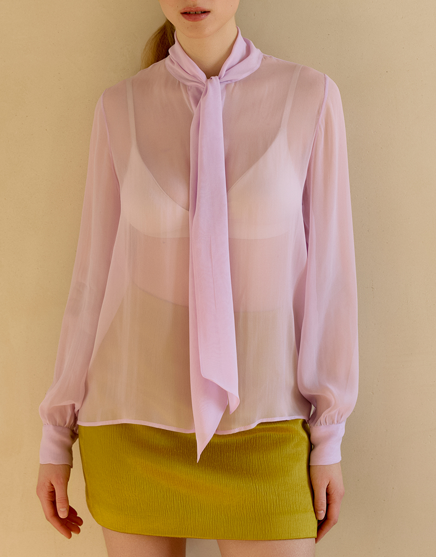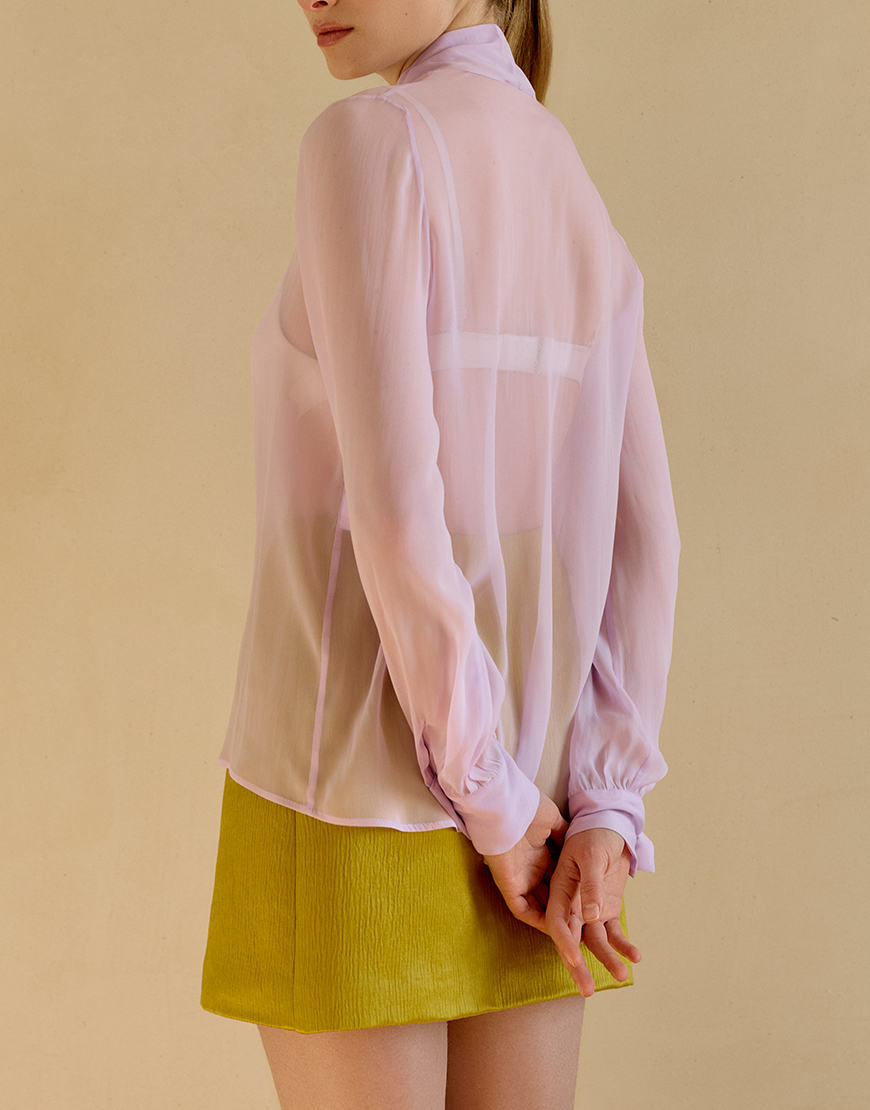 Сорочка з шовкового шифону із зав’язкою на шиї, застібається на ґудзики спереду, манжети на ґудзиках