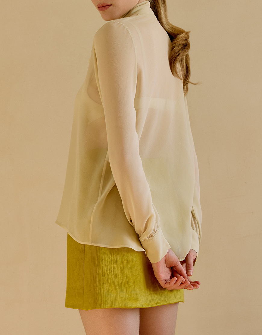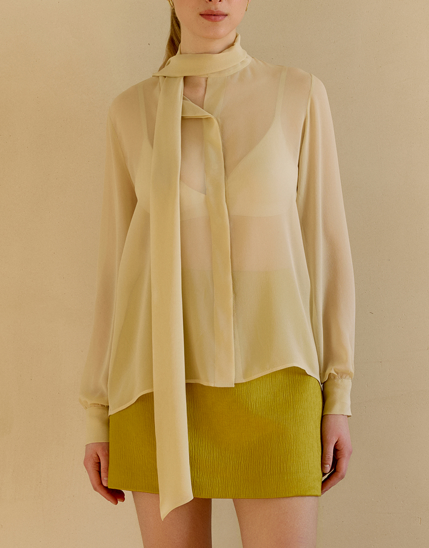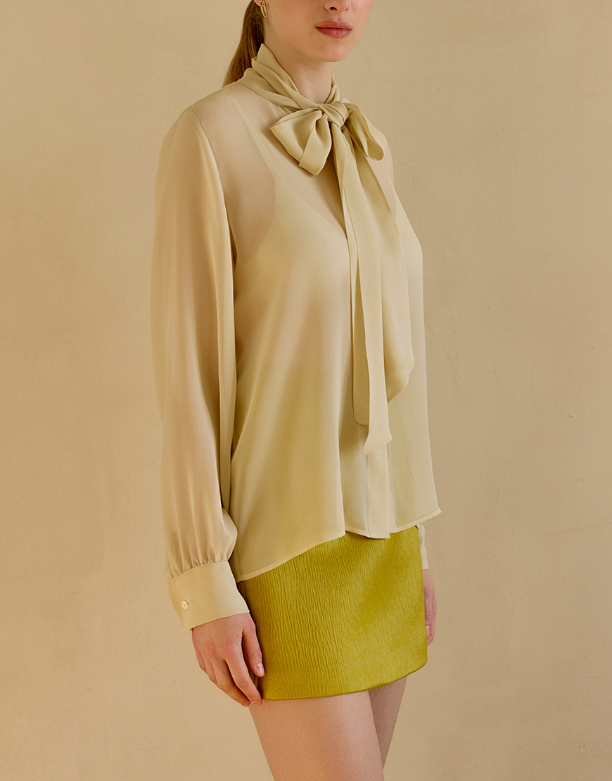 Сорочка з шовкового шифону із зав’язкою на шиї, застібається на ґудзики спереду, манжети на ґудзиках