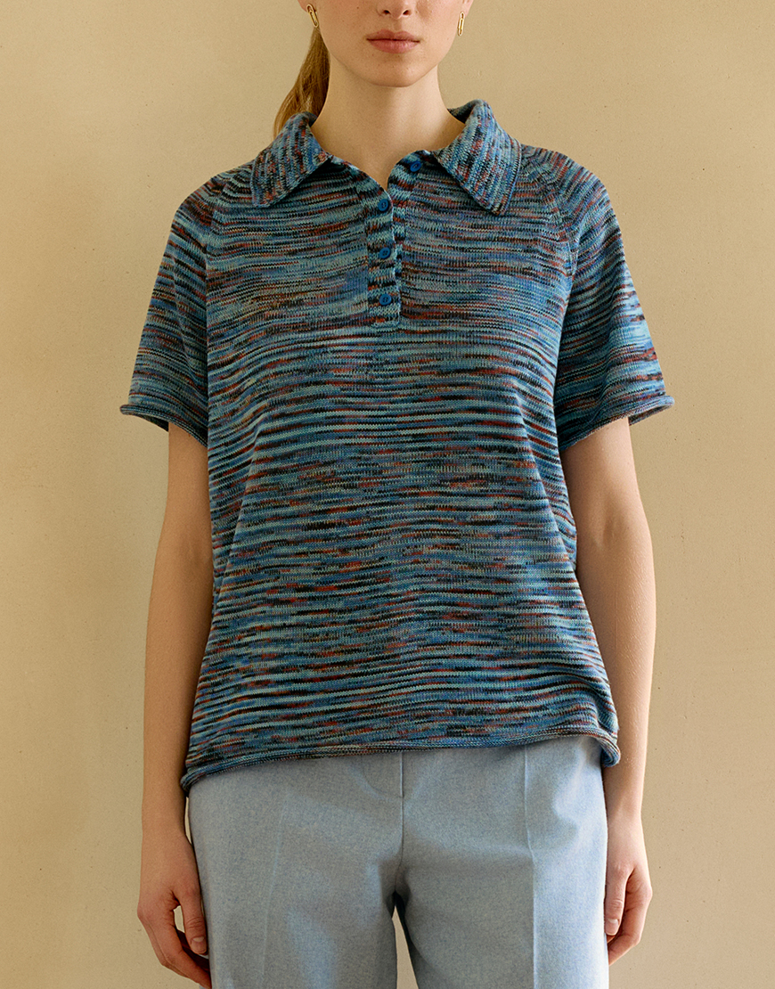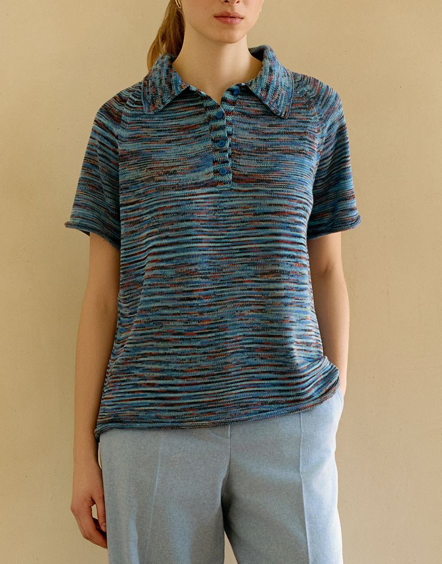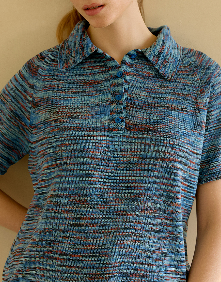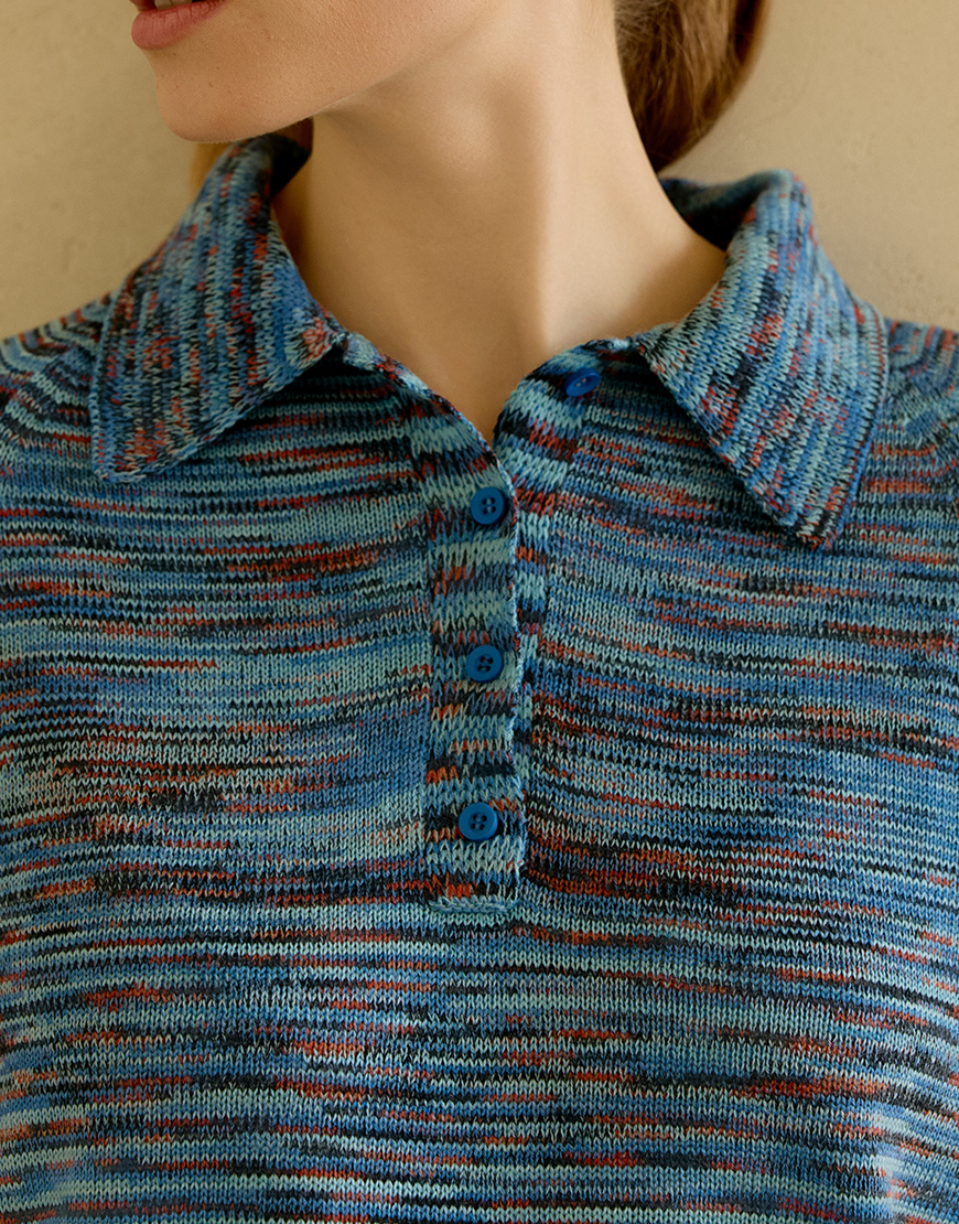 В’язаний светр-поло з короткими рукавами, комір поло з ґудзиками, вільний крій