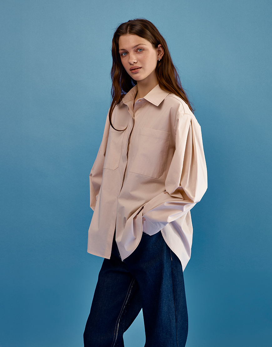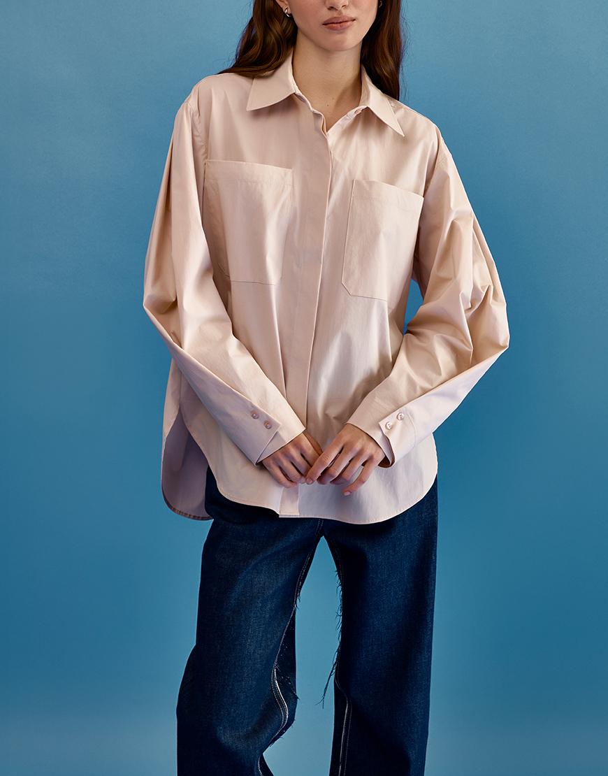 Доставка впродовж 2-5 робочих днівСорочка оверсайз, сорочковий комір, дві накладні кишені, довгі рукави з защипами, застібається на ґудзики спереду