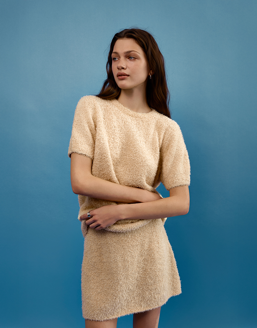 В’язаний светр з короткими рукавами, вільний крій, круглий комір