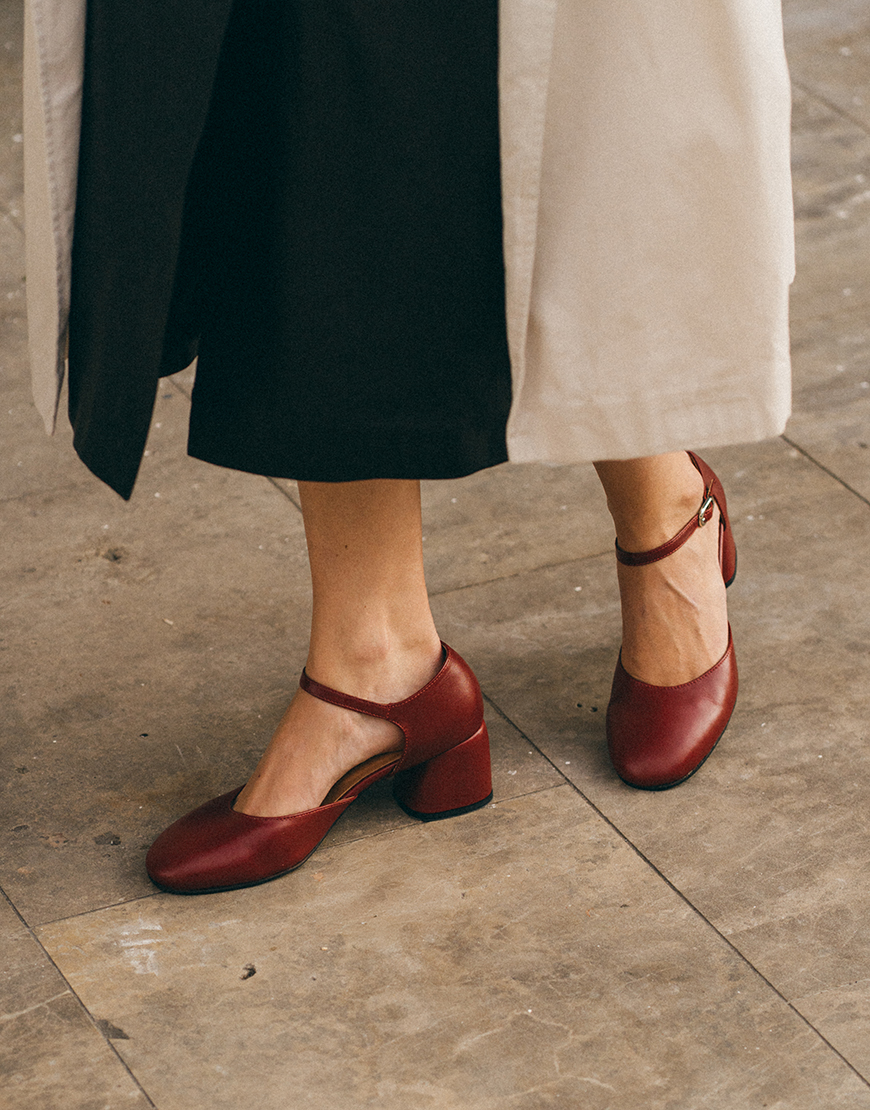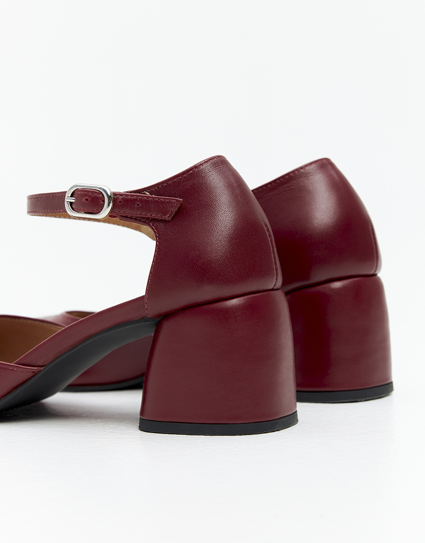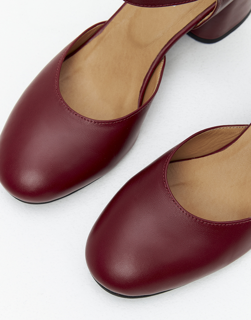 Доставка протягом 3-5 робочих днівРегульований ремінець навколо щиколотки, стійкі підбори – 5 см, насичений бордовий колір та заокруглий носок. Стриманий дизайн, класичний силует та асиметрія позаду роблять цю модель універсальною – вдало поєднується і з костюмом, а також романтичною сукнею. Вибирайте свій звичний розмір.
