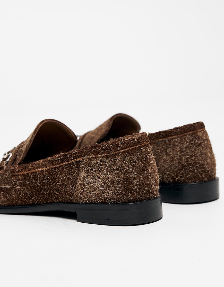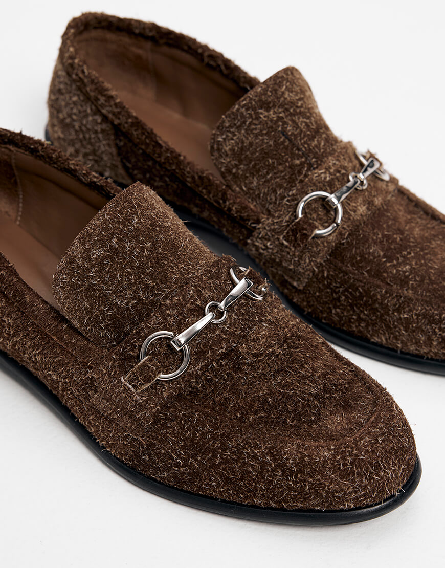 Доставка протягом 3-5 робочих днівВиконані з ворсистої замшевої шкіри у шоколадному кольорі, вони поєднують комфорт та вишуканість. Металева срібна перемичка додає акцентності, а класична форма робить пару універсальною для різних образів – від кежуал до ділового стилю. Рекомендуємо обирати свій звичний розмір.