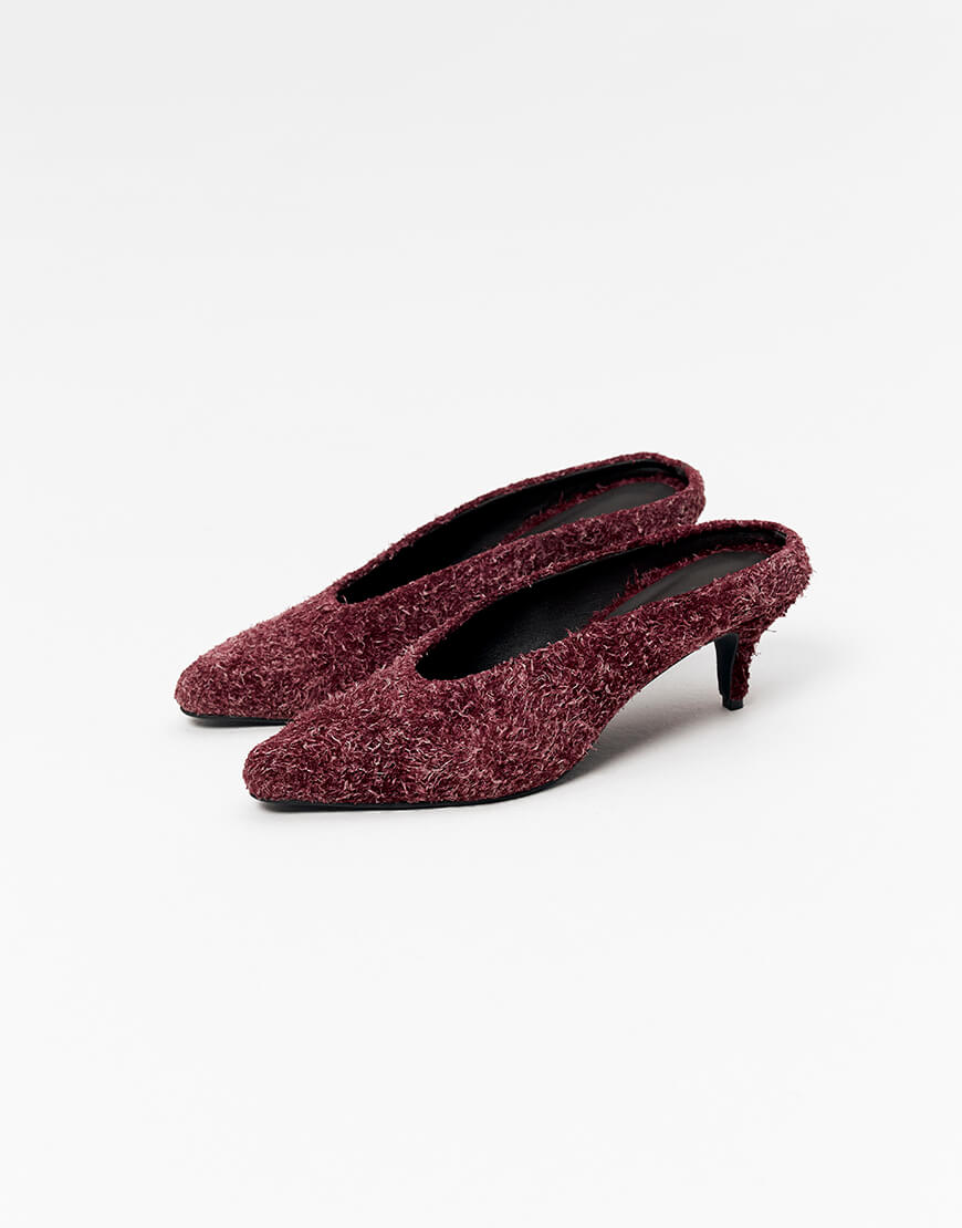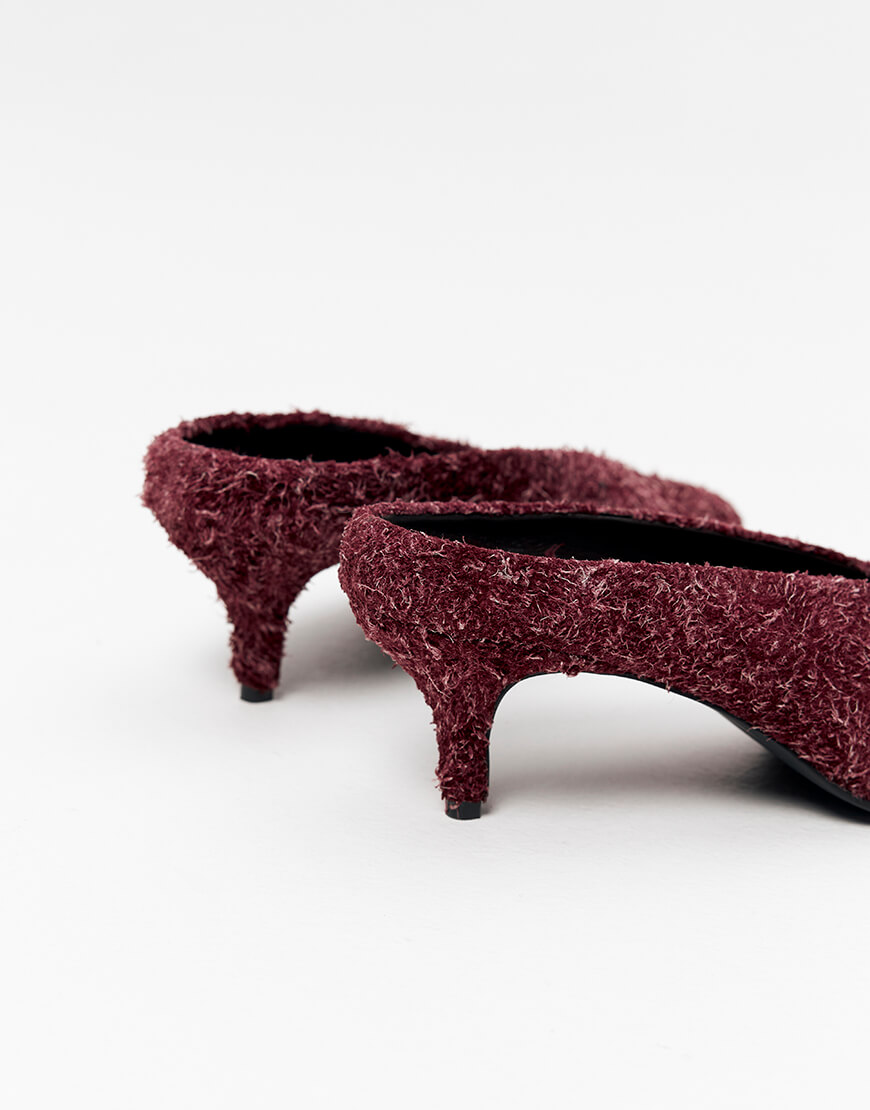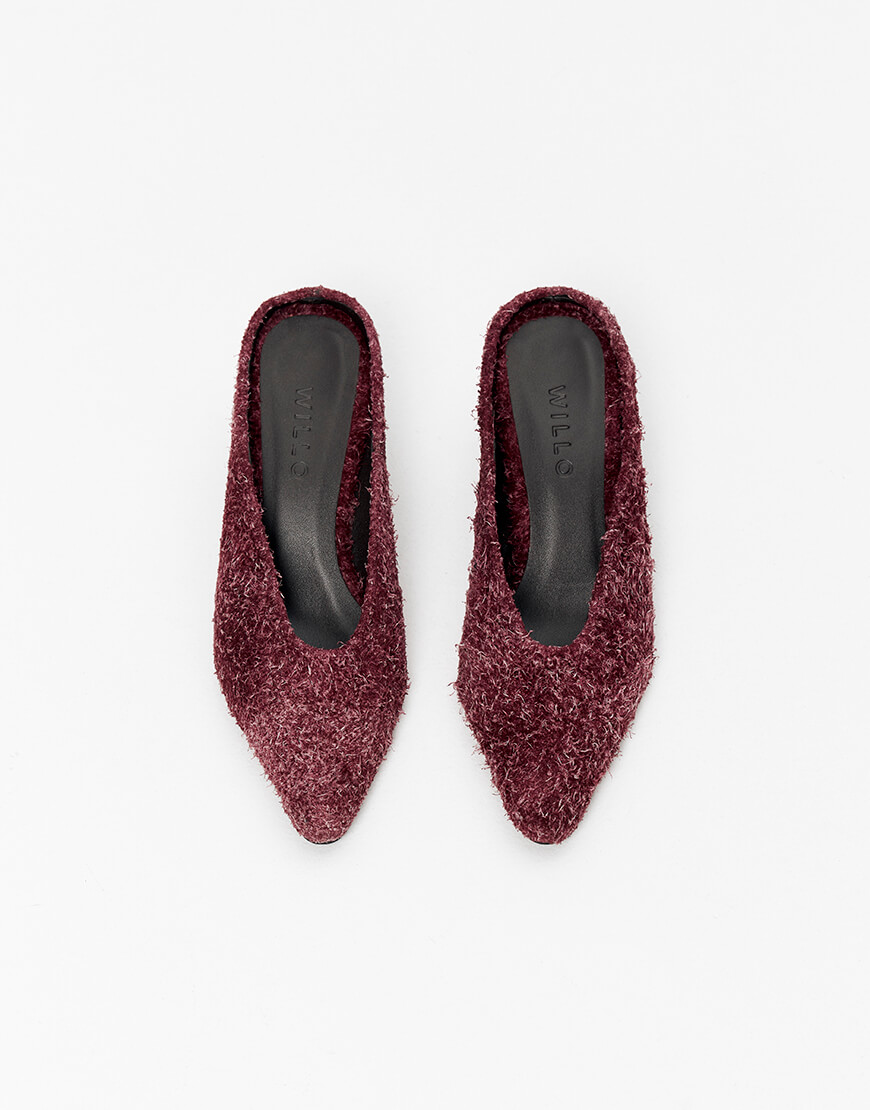 Доставка протягом 3-5 робочих днівВитончені мюлі в сливовому кольорі виконані із ворсистої замшевої шкіри. Загострений носок та зручні підбори додають силуету легкості та жіночності. Рекомендуємо обирати на розмір більший свого звичного.