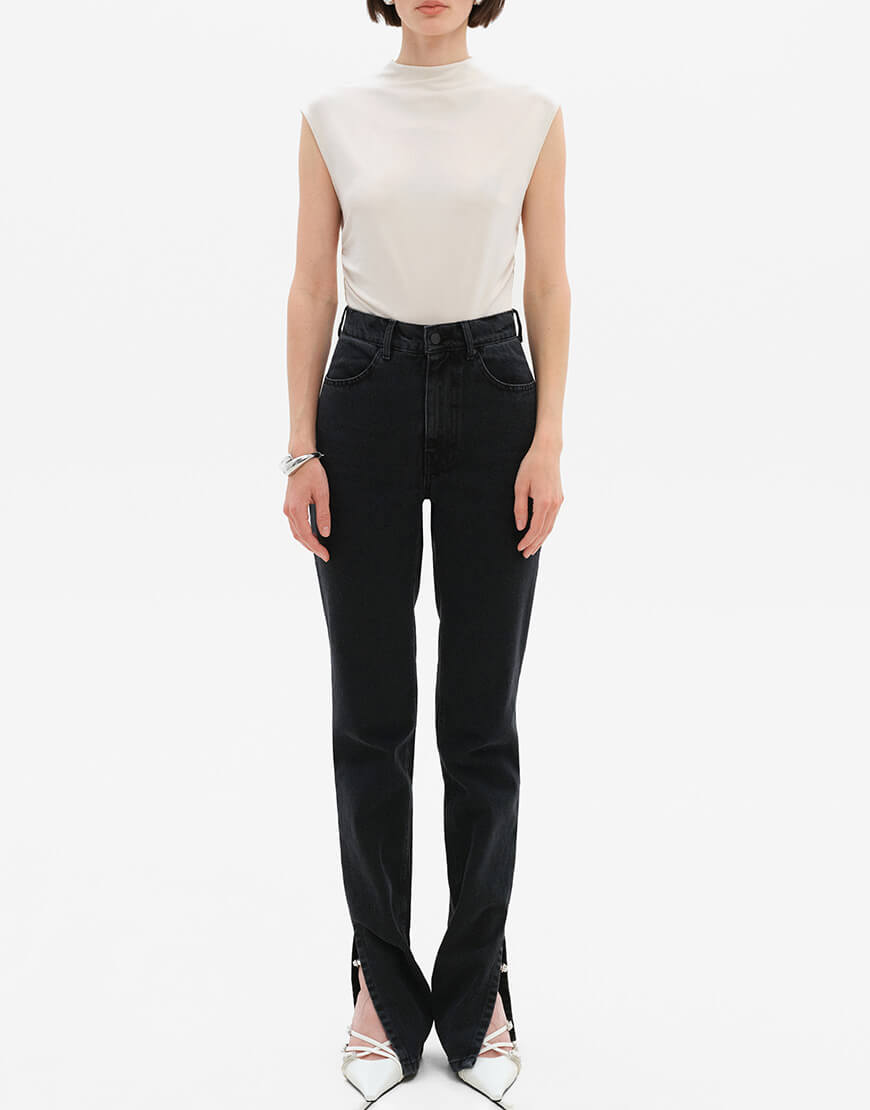 Висока посадка, прямий крій і крута деталь, розрізи повздовж нижньої зовнішньої частини штанів – всі ці властивості зроблять твій образ стильним і звичайно ж комфортним. У моделі оброблений край штанів. Є шлейки для ременя. Застібається на блискавку і гудзик.