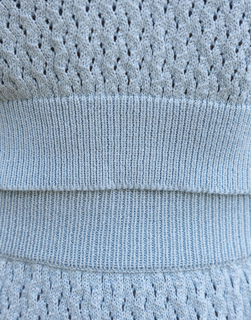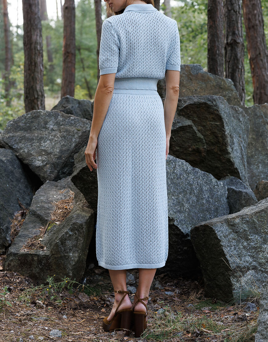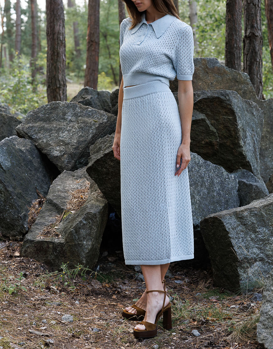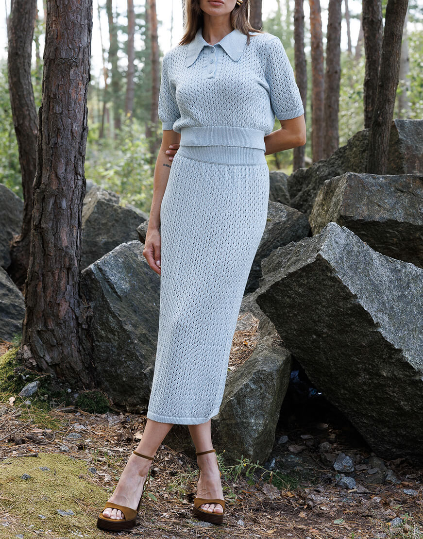 Ажурне кроп-поло з італійської пряжі з люрексом. Поло має 3 ґудзики, пофарбовані у тон пряжі.