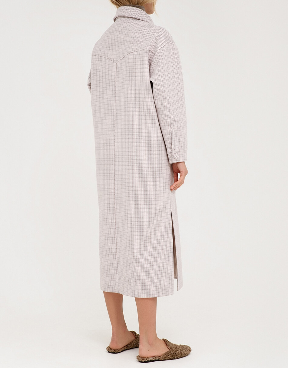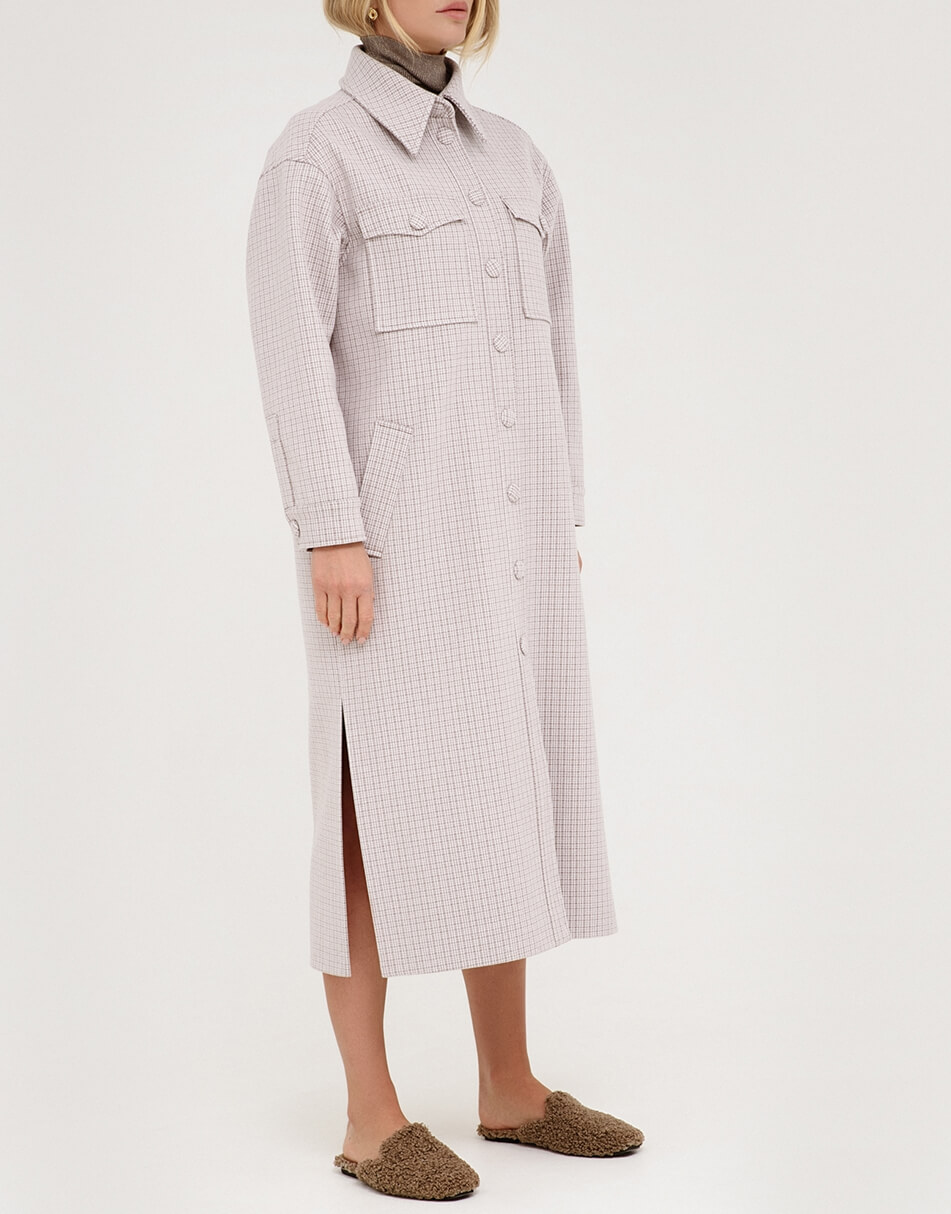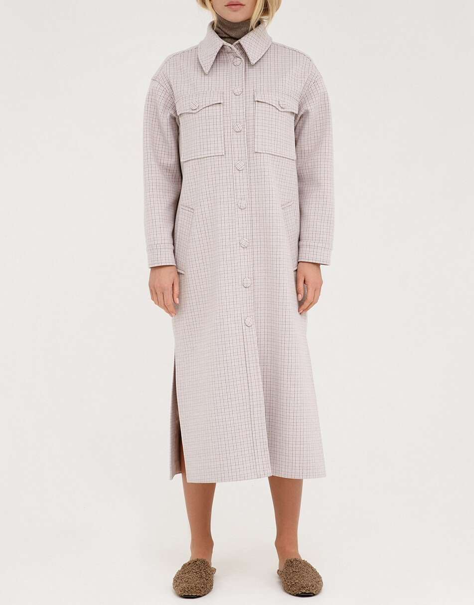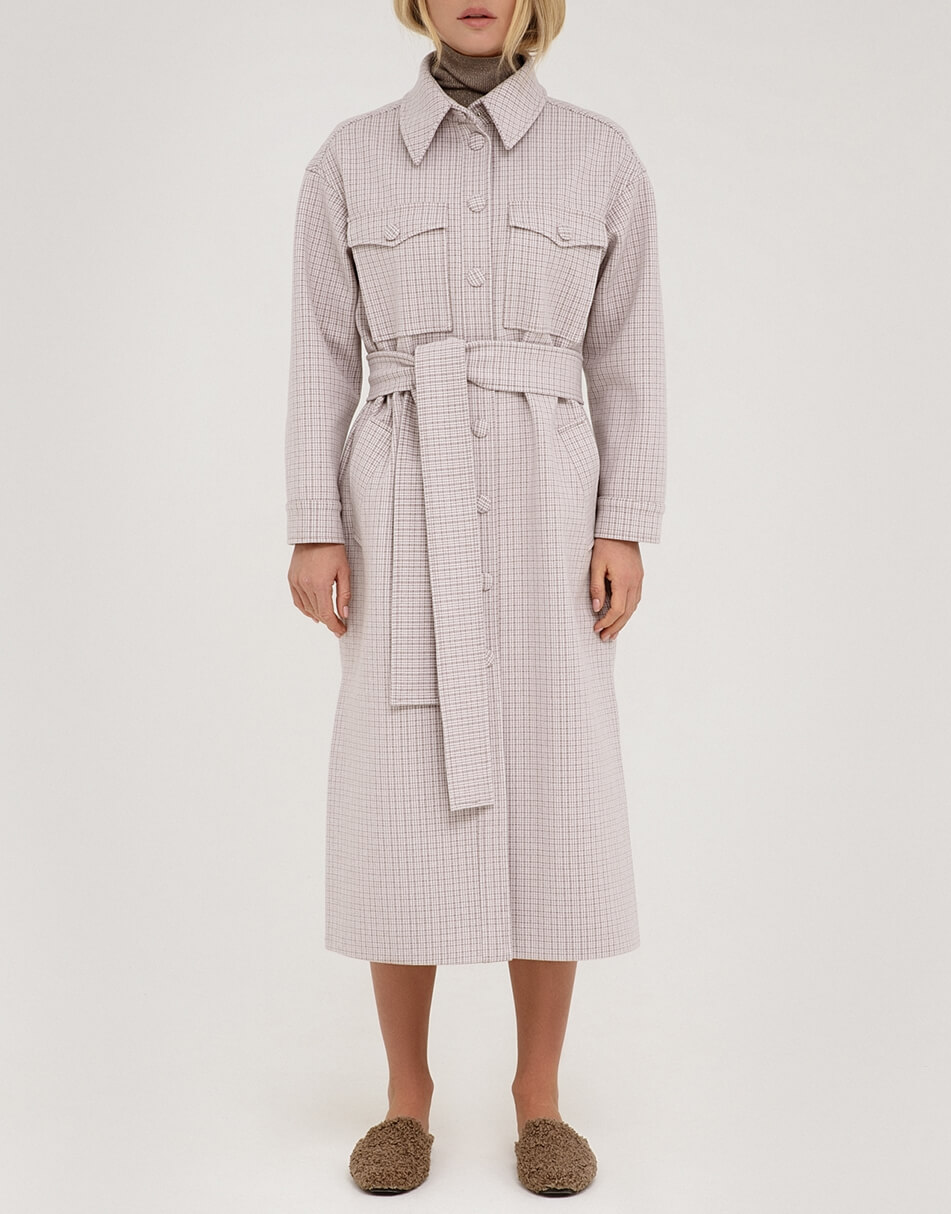 Доставка в течение 2-14 рабочих днейВовняне пальто-сорочка з накладними нагрудними кишенями та кишенями-листочками. Застібка: кнопки, обтягнуті основною тканиною. У комплекті пояс. Модель на підкладці.