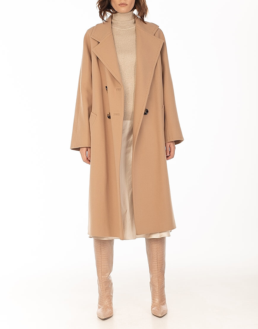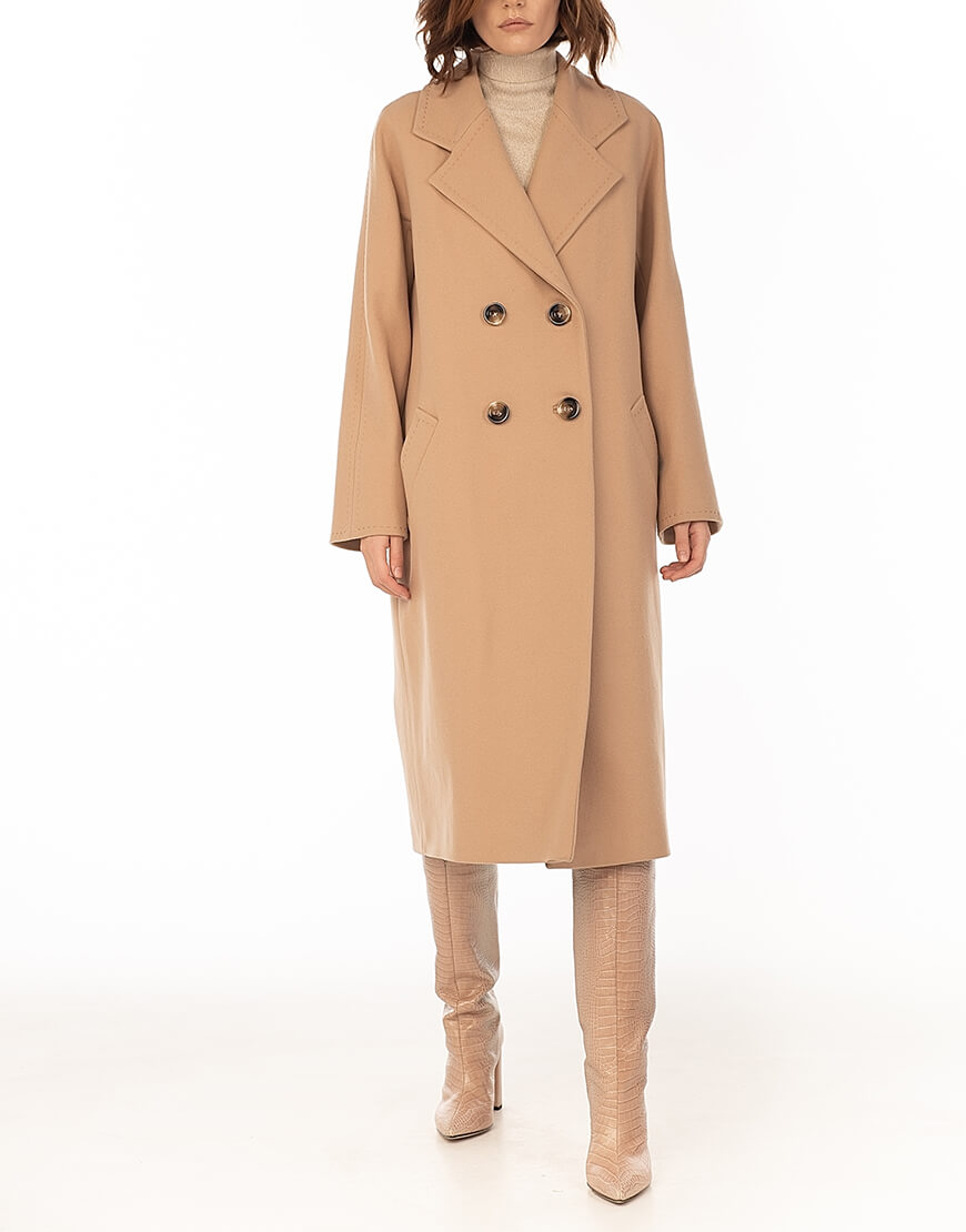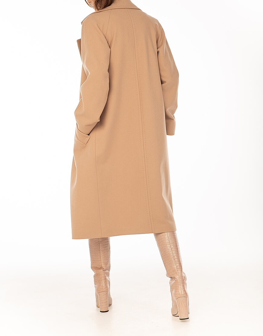 Класичне двобортне пальто з рукавом реглан і відстрочкою “ручний стібок”.