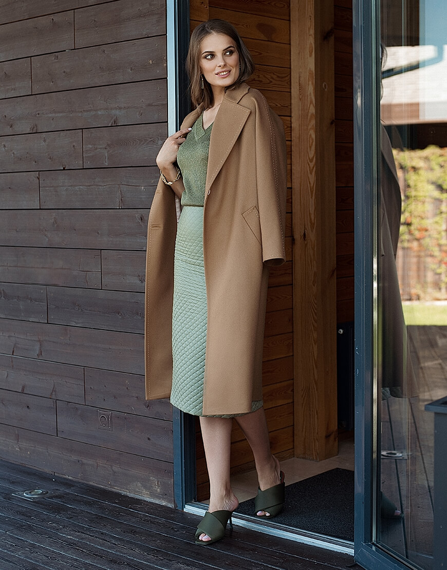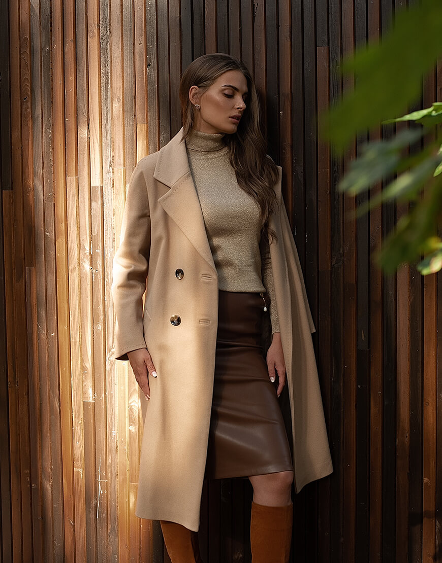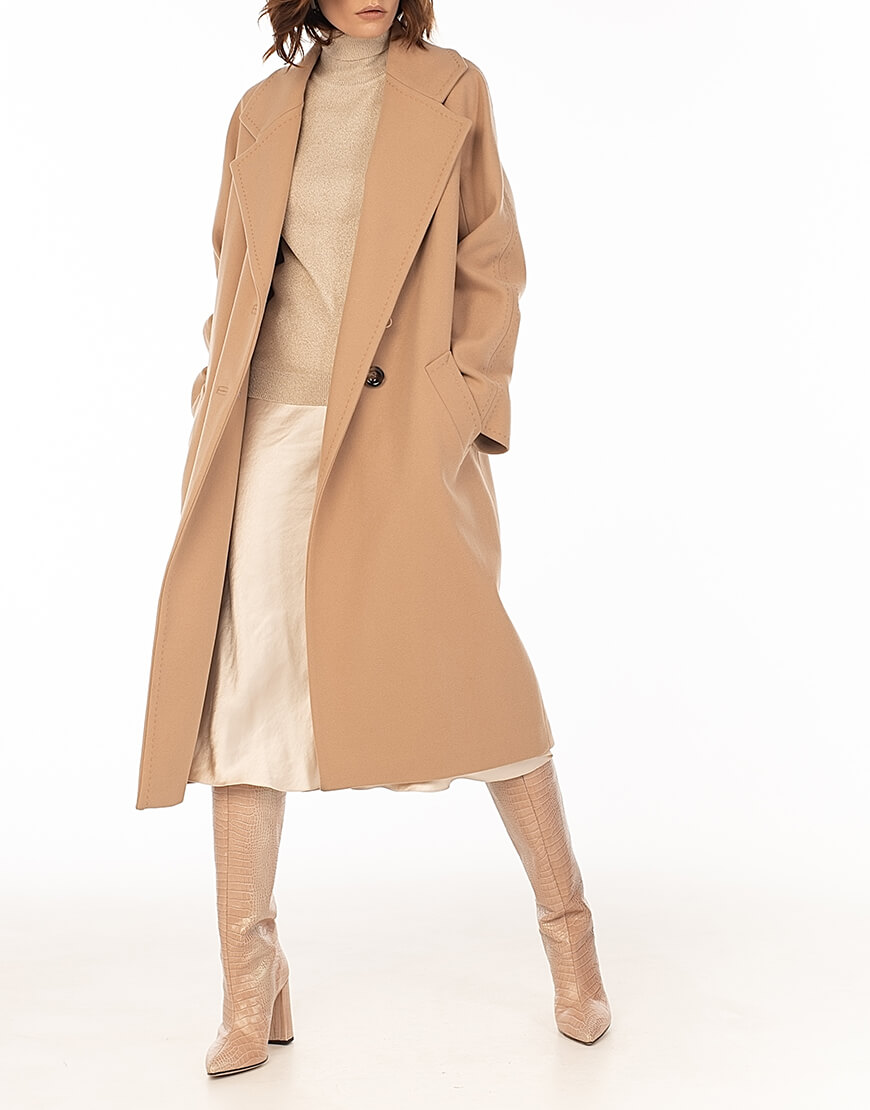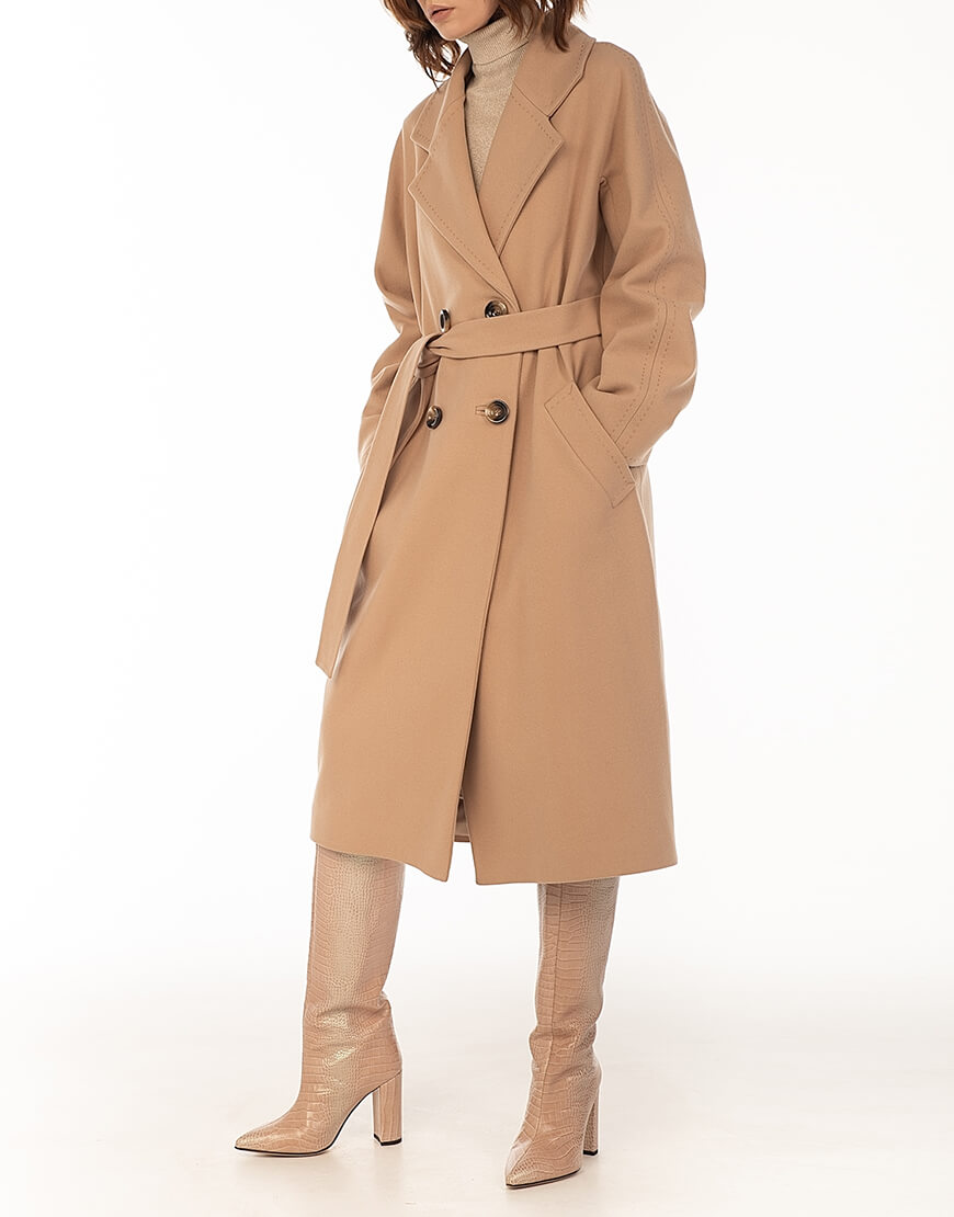 Класичне двобортне пальто з рукавом реглан і відстрочкою “ручний стібок”.