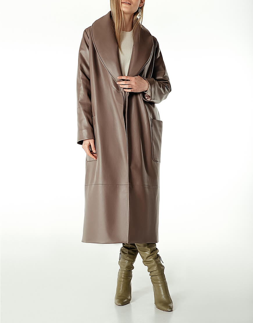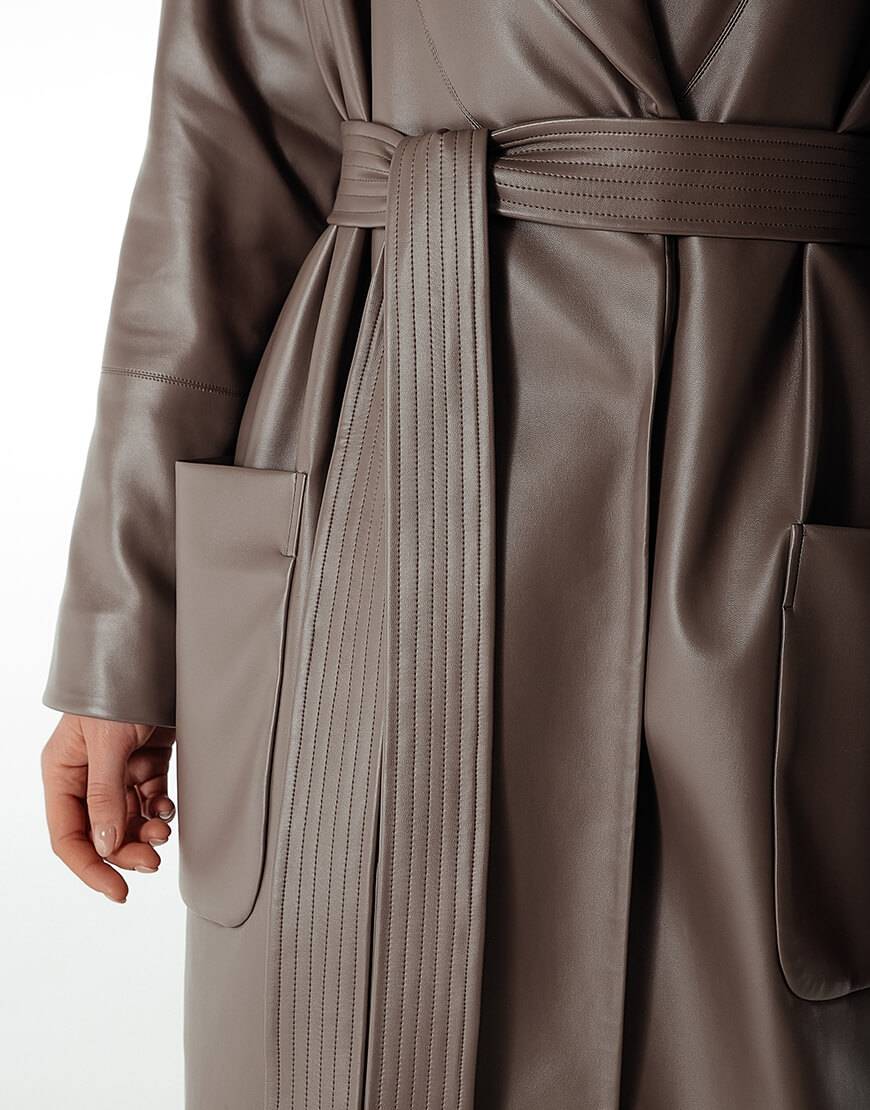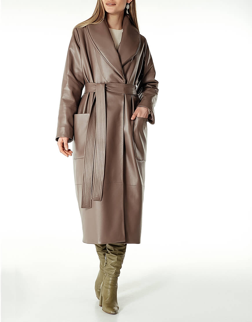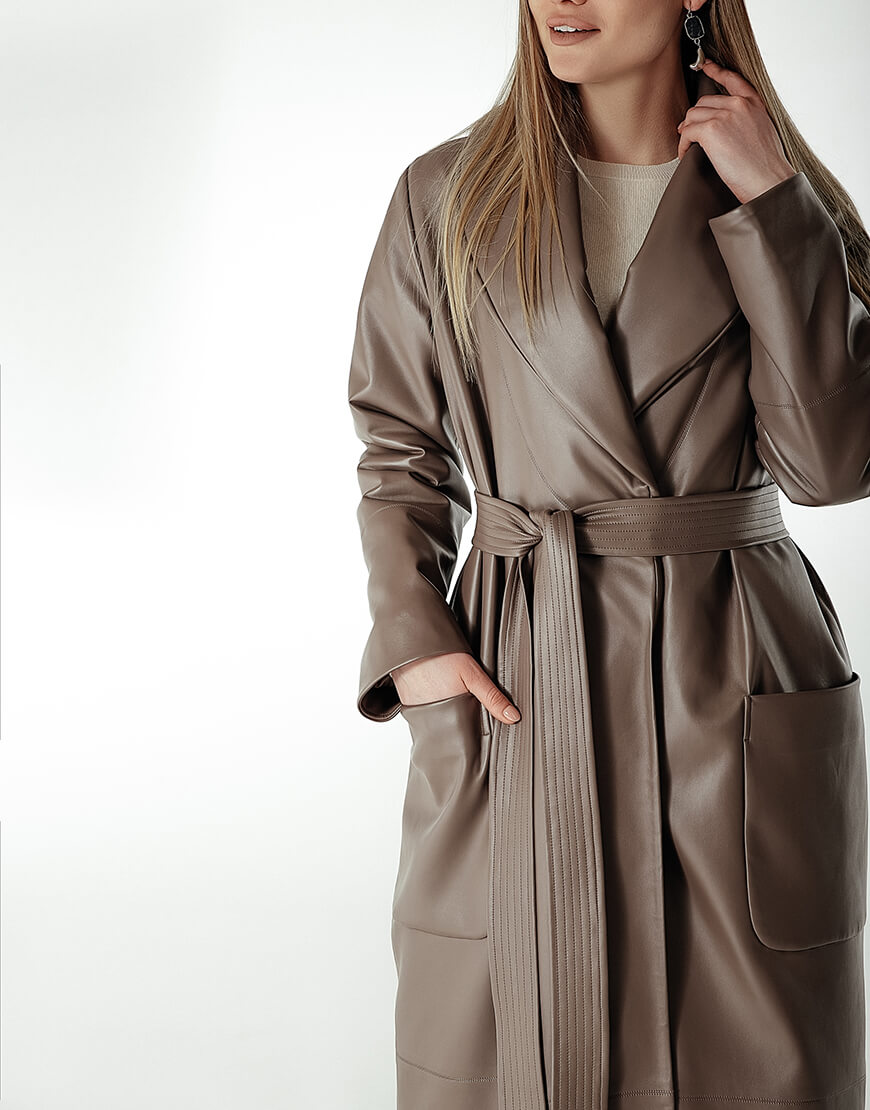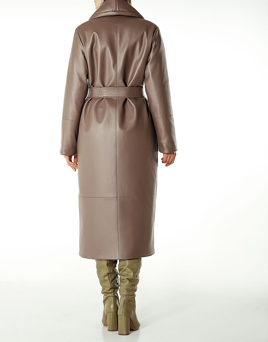 Зимове утеплене пальто з еко-шкіри. Утеплювач: термолофт. У комплекті пояс. До мінус 15-10.