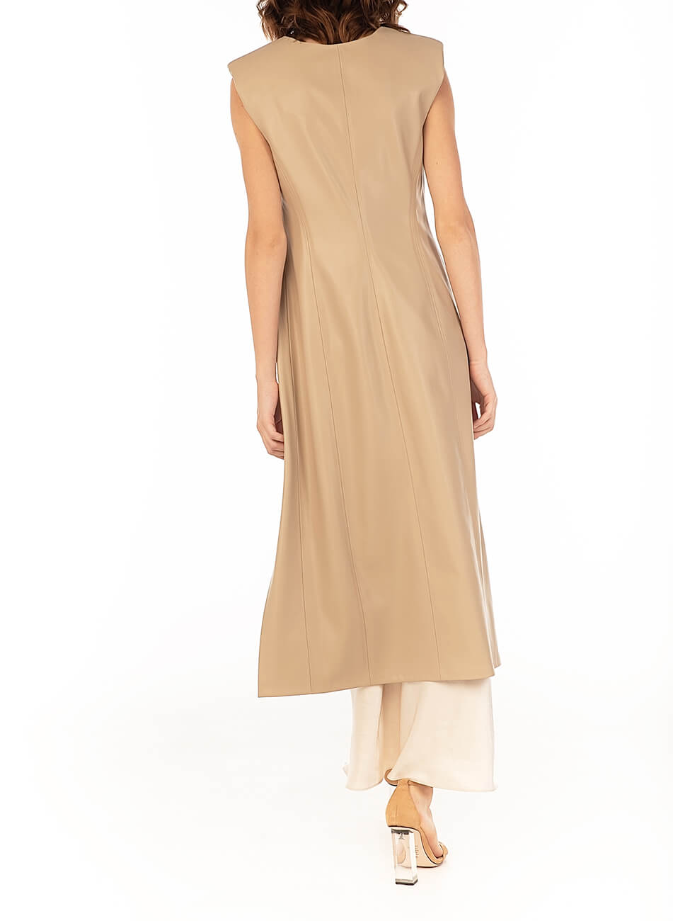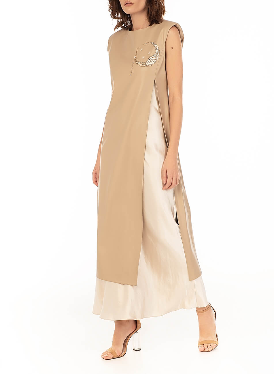 Подовжений топ з вишивкою з еко-шкіри з об’ємними плечима.