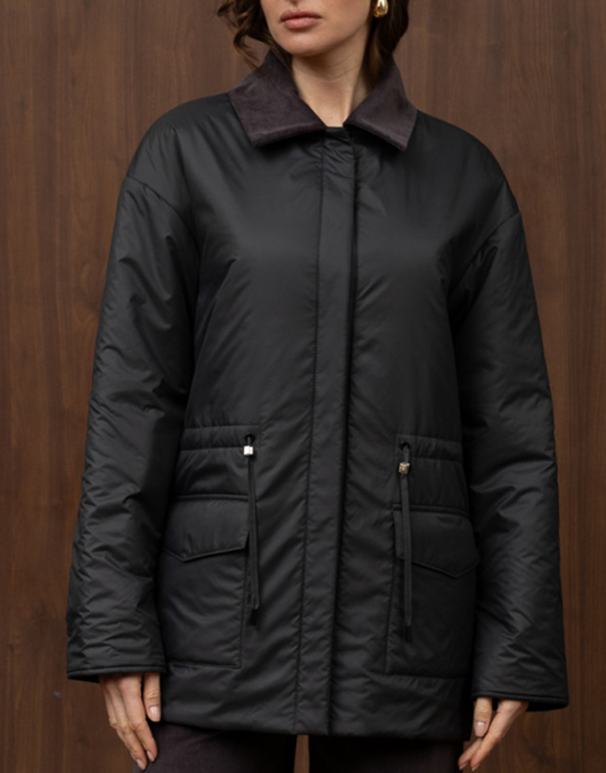 Двостороння демісезонна куртка з кишенями. Талія куртки оздоблена внутрішньою кулісою, яка дозволяє підкреслювати талію.
