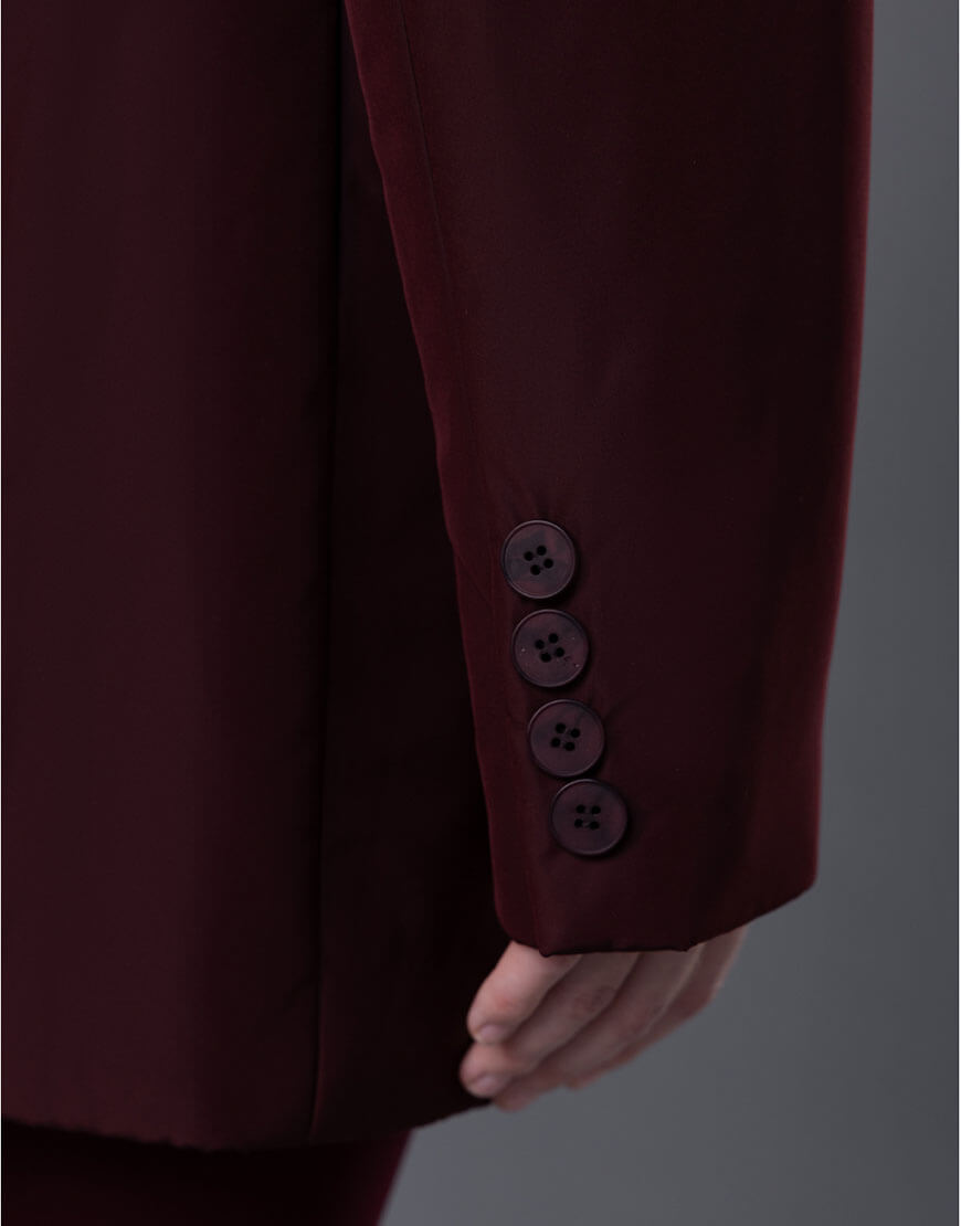 Ґудзики пофарбовані в тон тканини, в комплекті є пасок-жгут з основної тканини.