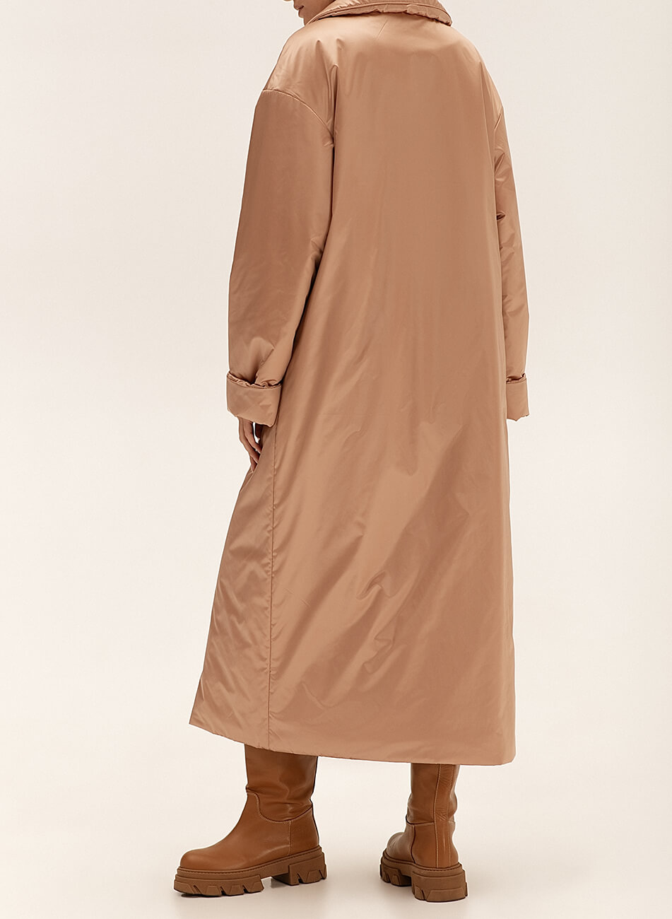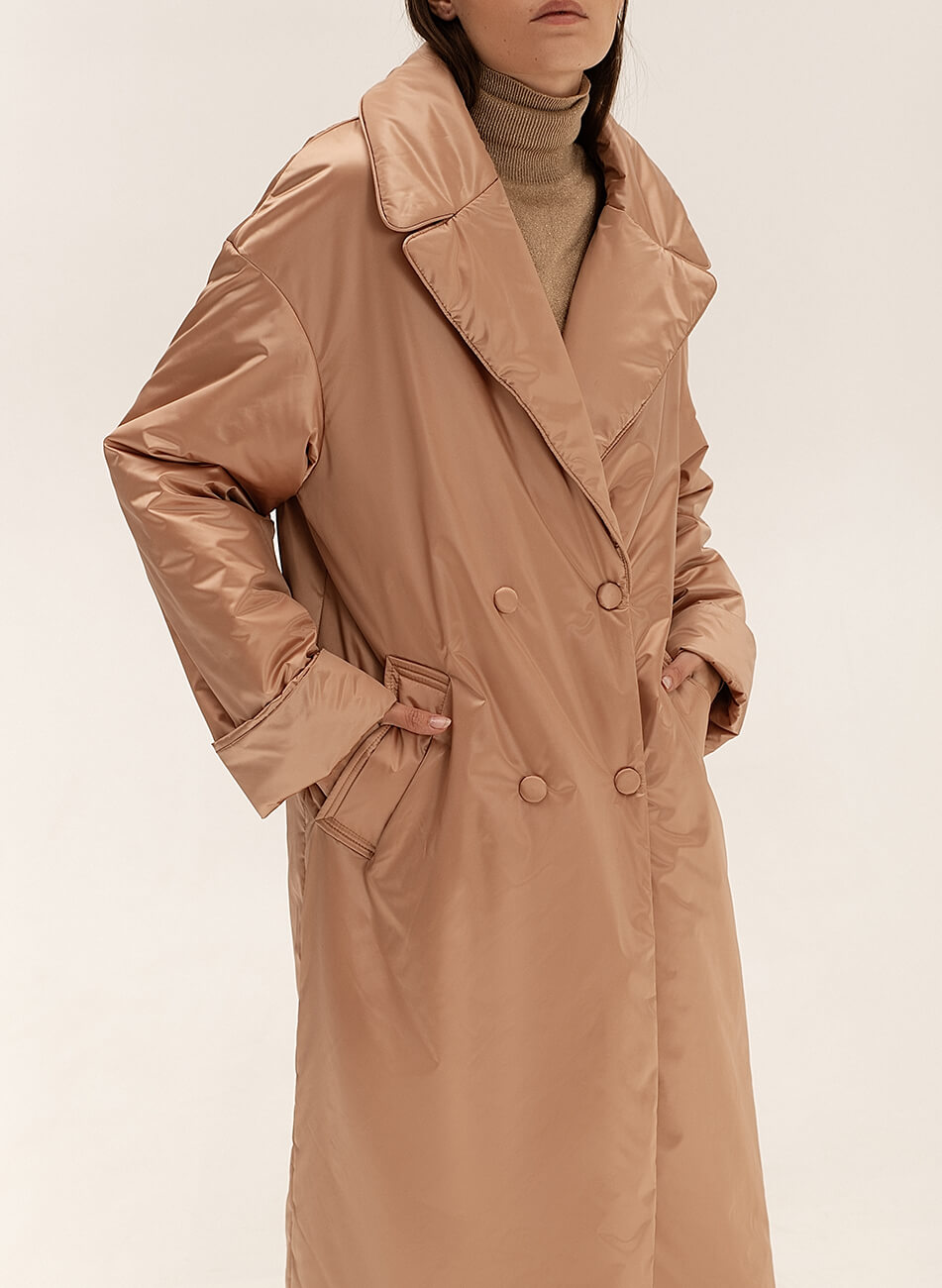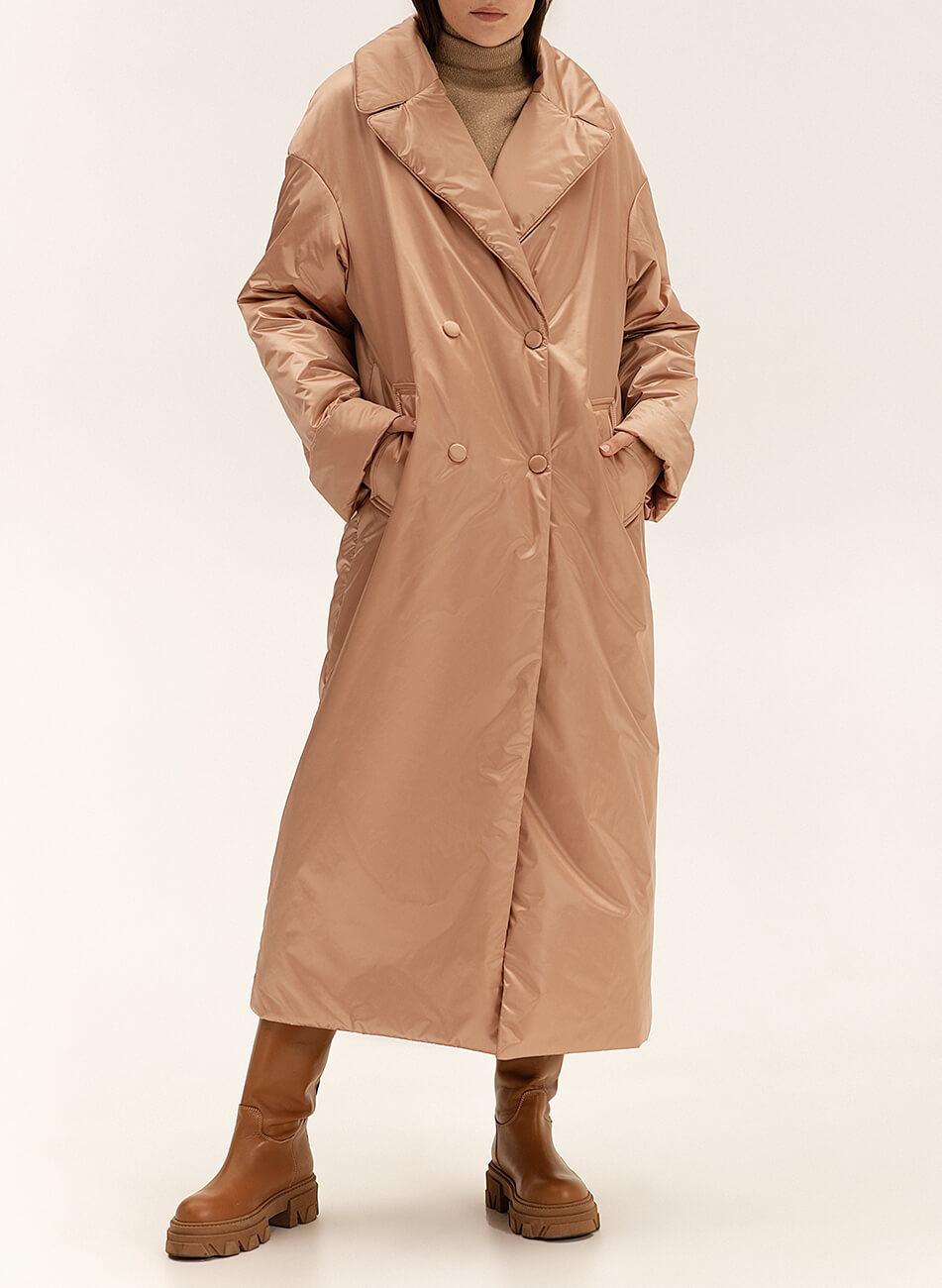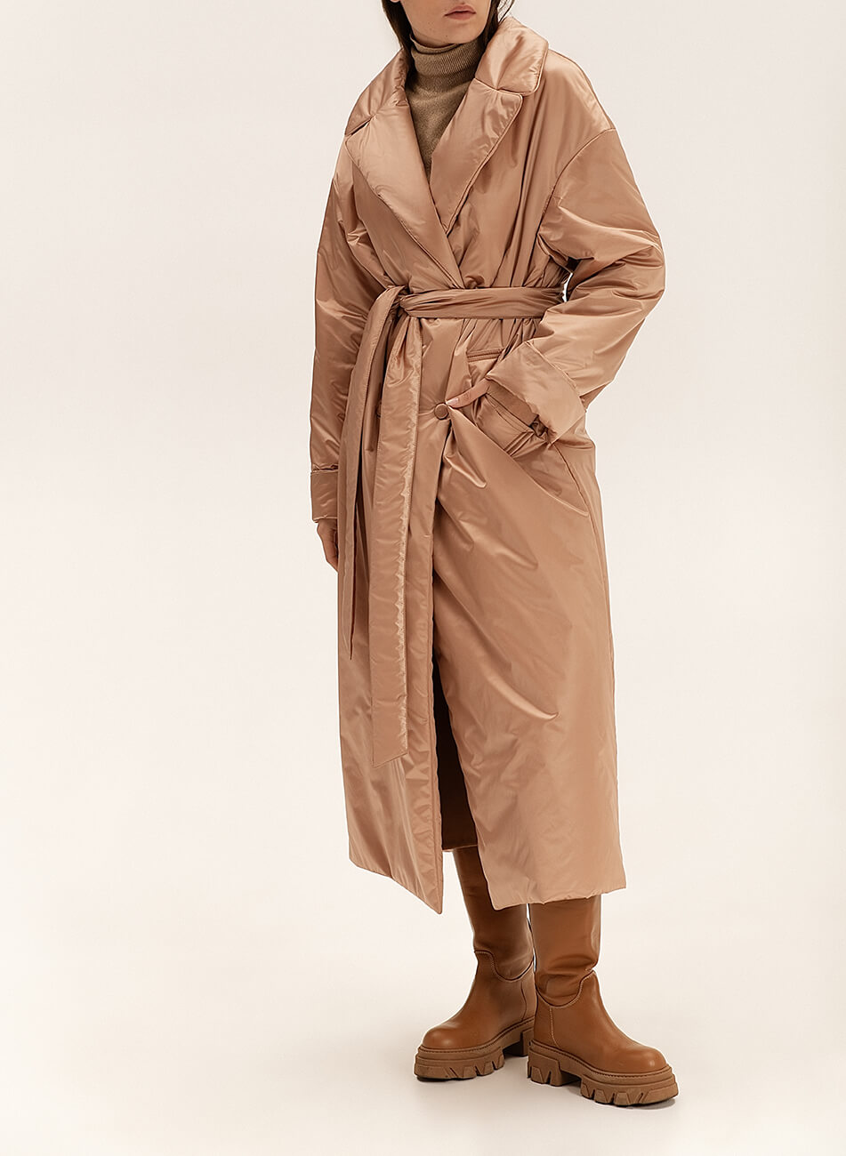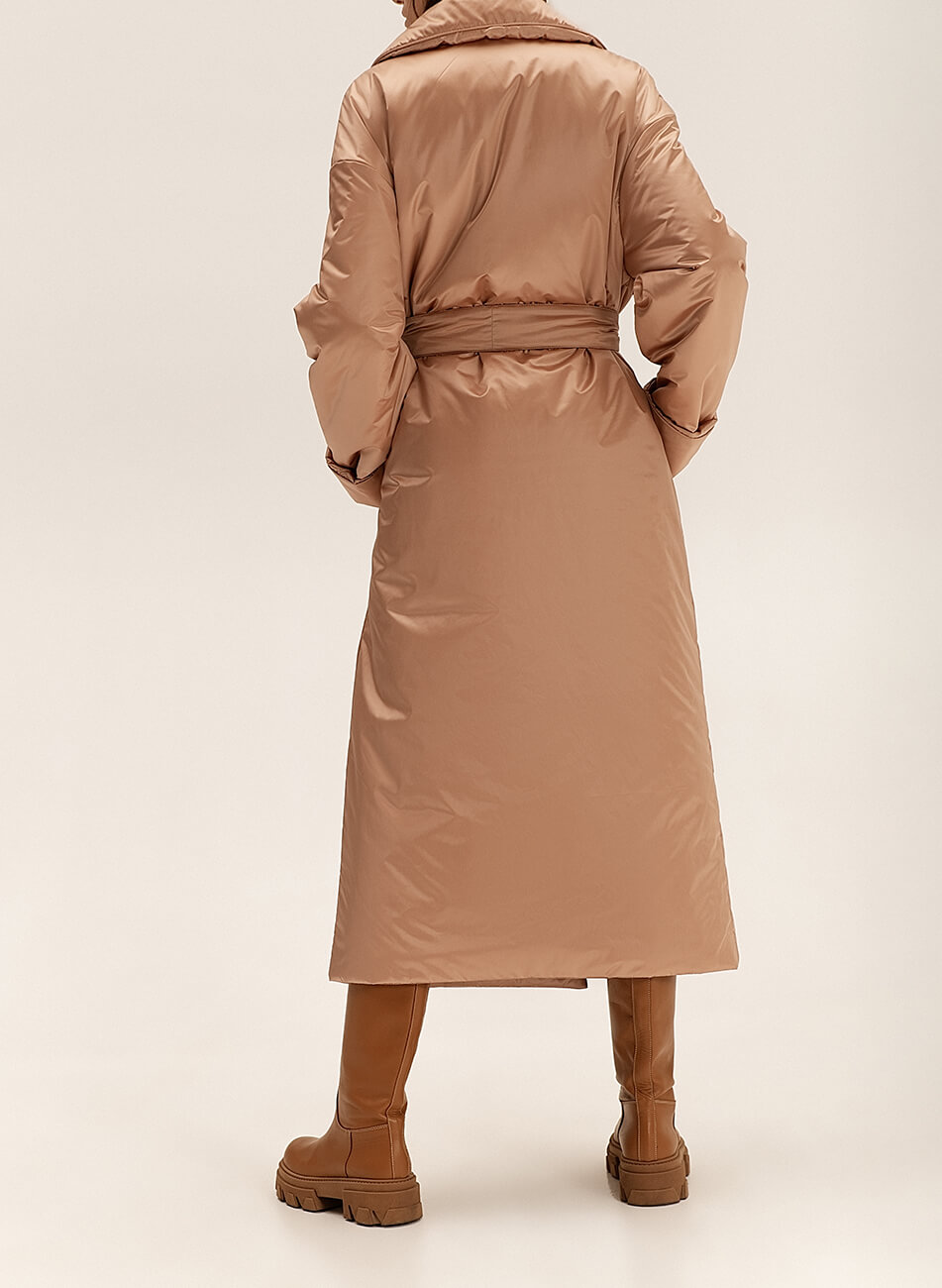 Зимове пальто-пуховик на кнопках із класичною формою коміра. У комплекті пояс.