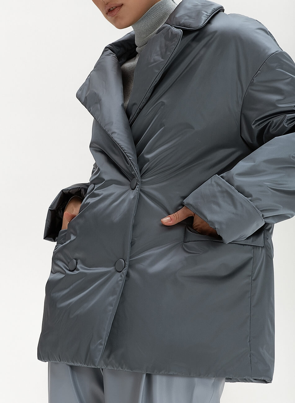 Зимове пальто-пуховик на кнопках із класичною формою коміра. У комплекті пояс.