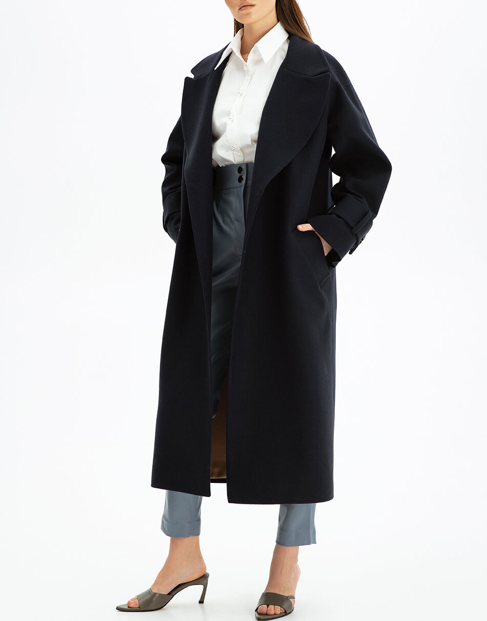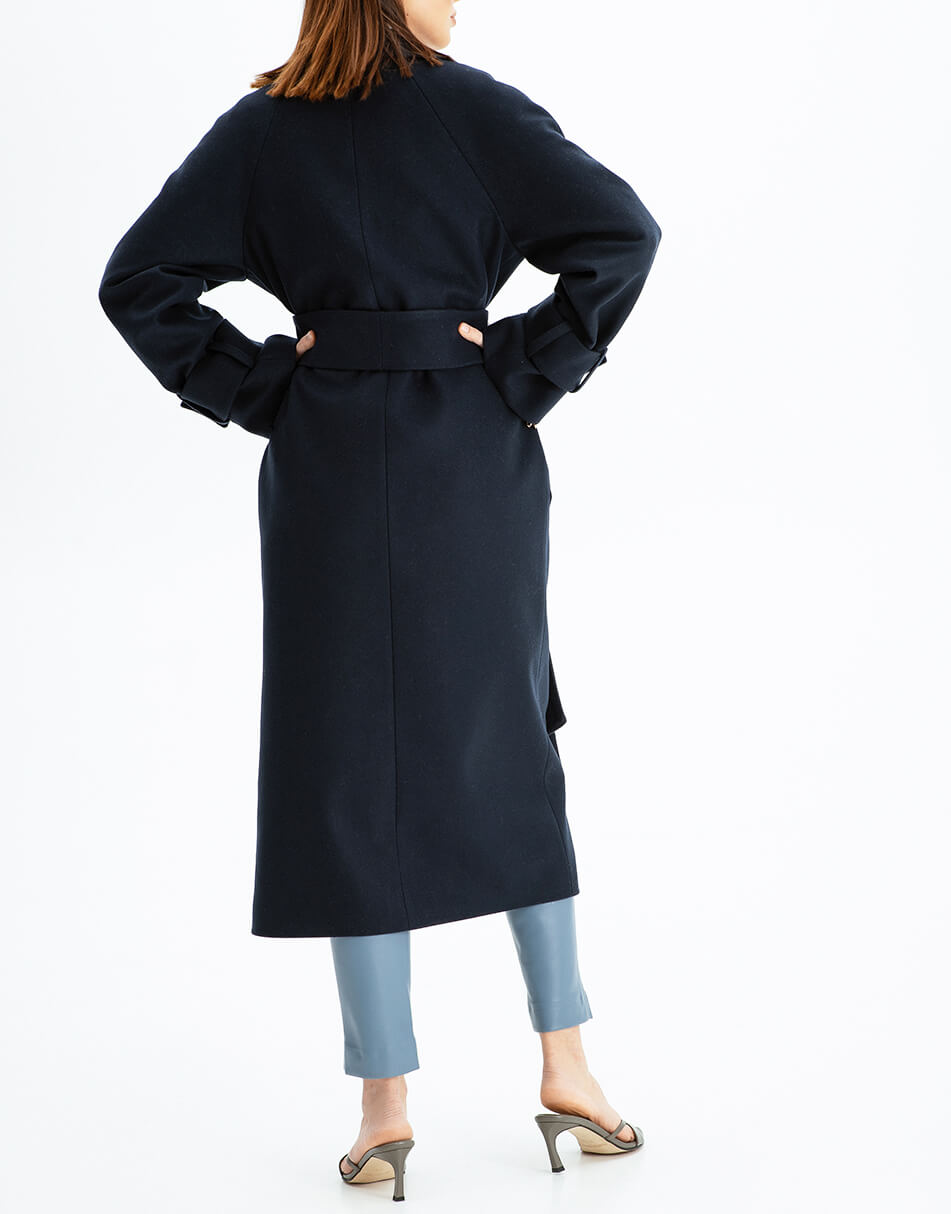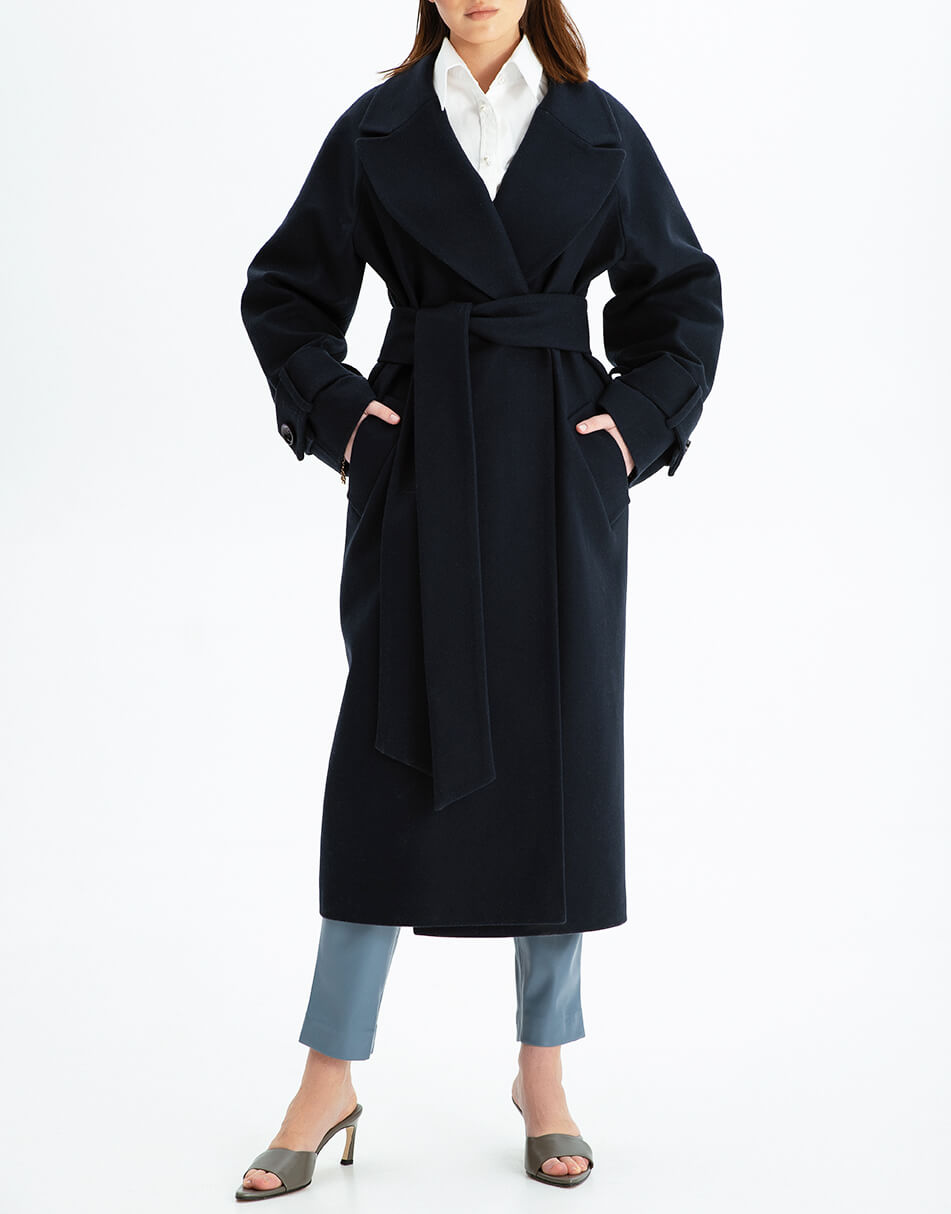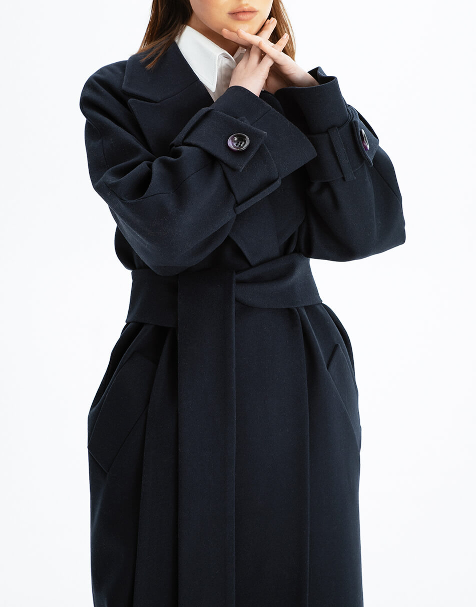 Пальто на запах із широким поясом із вовни.