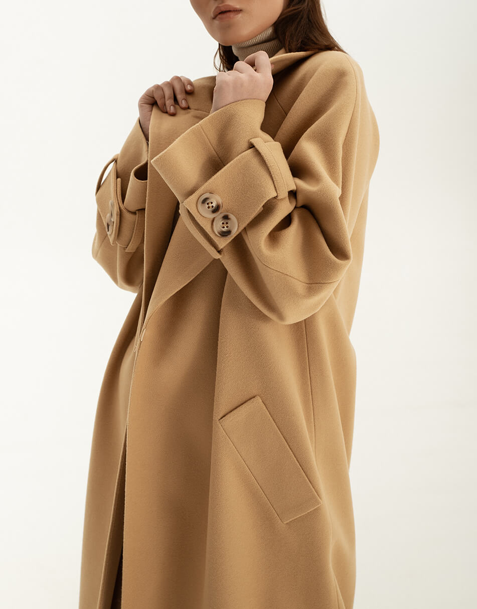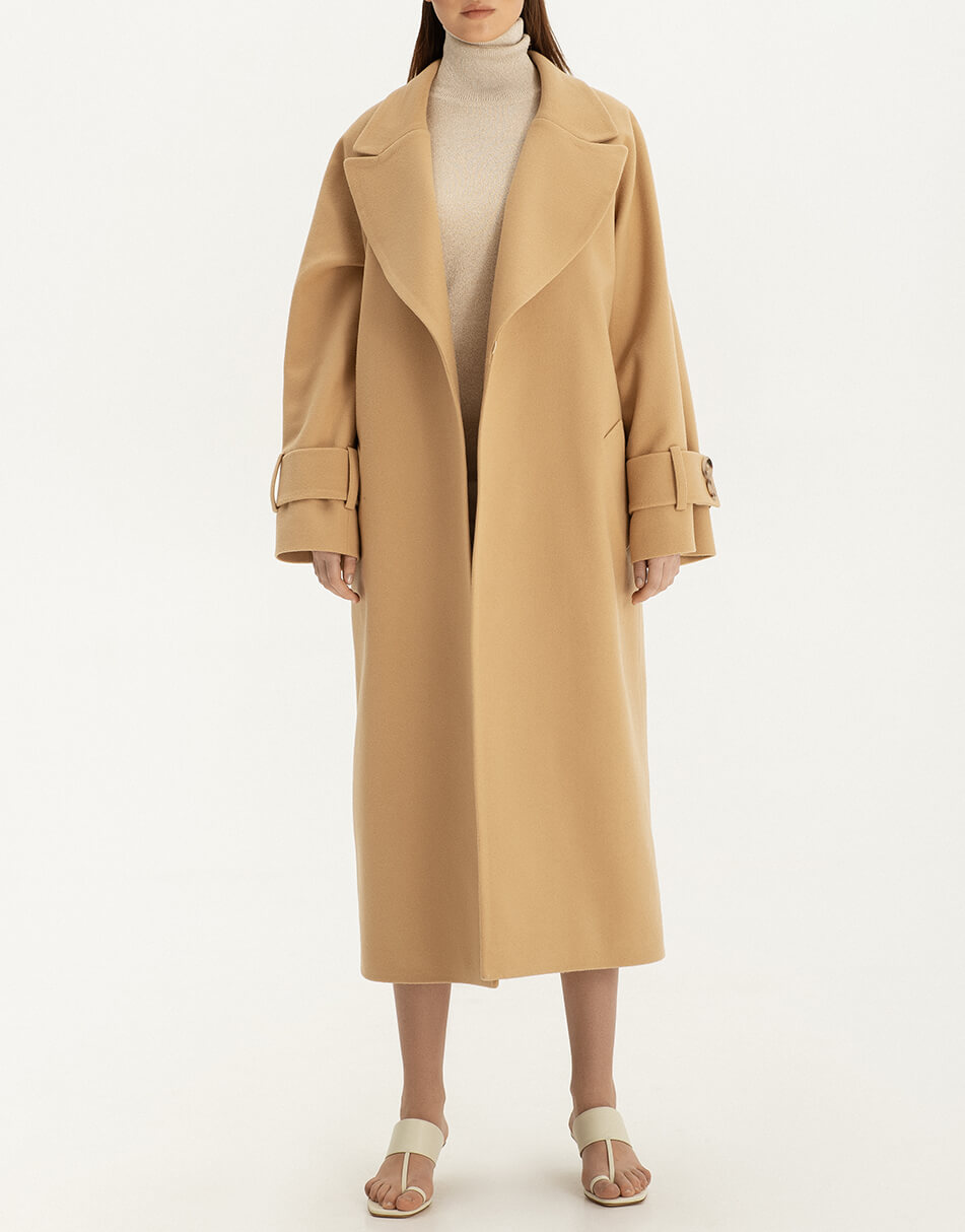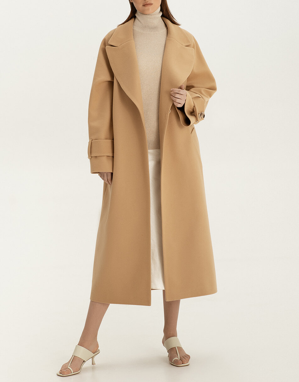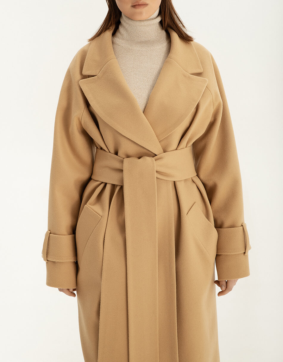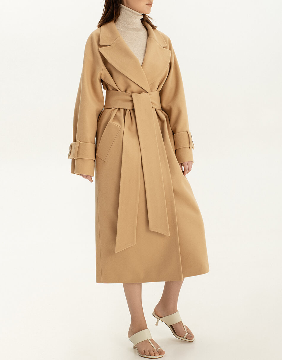 Пальто на запах із широким поясом із вовни.