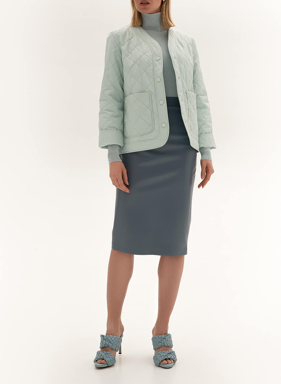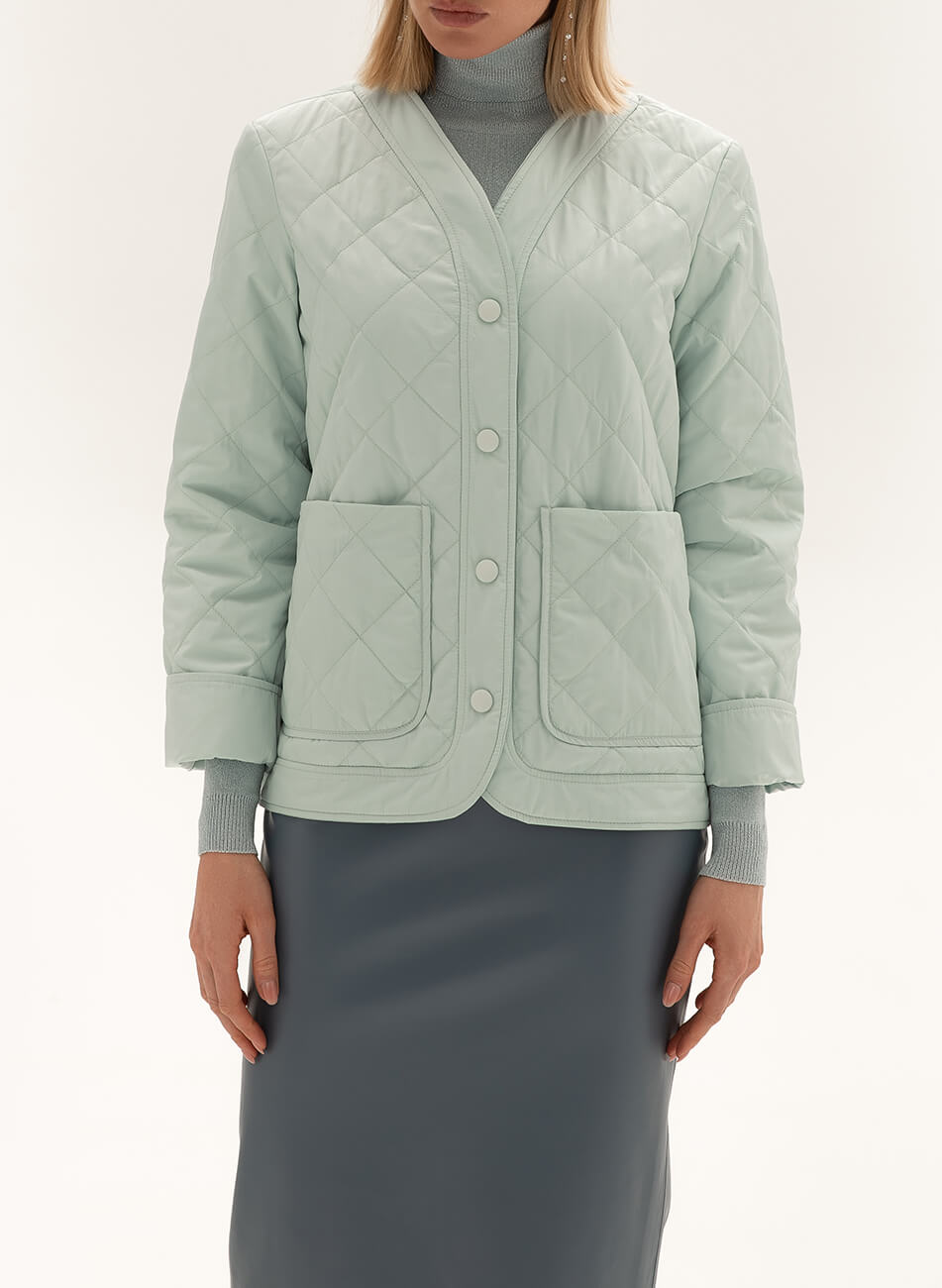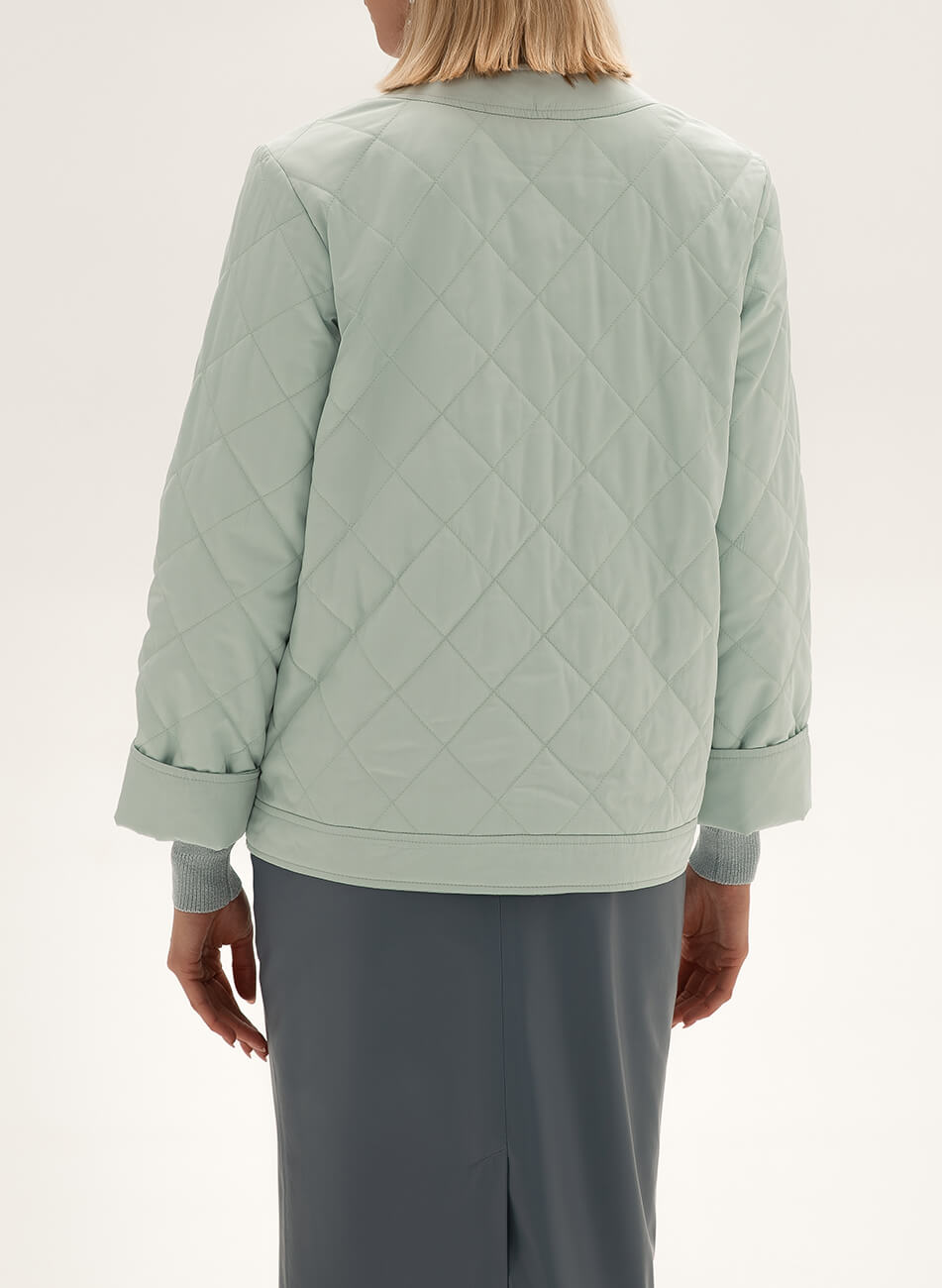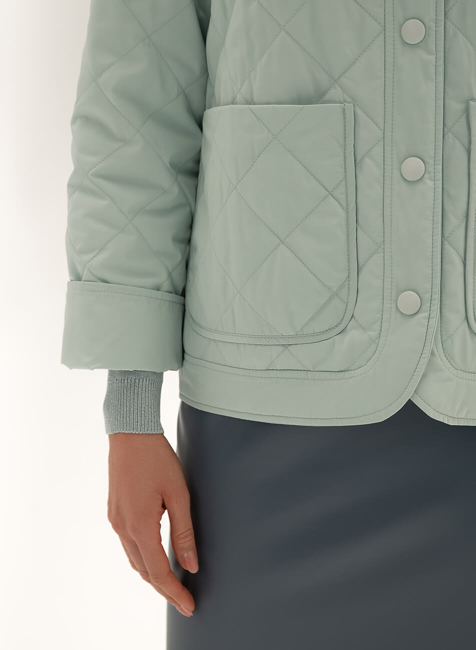 Легкий короткий стьобаний пуховик із плащової тканини.