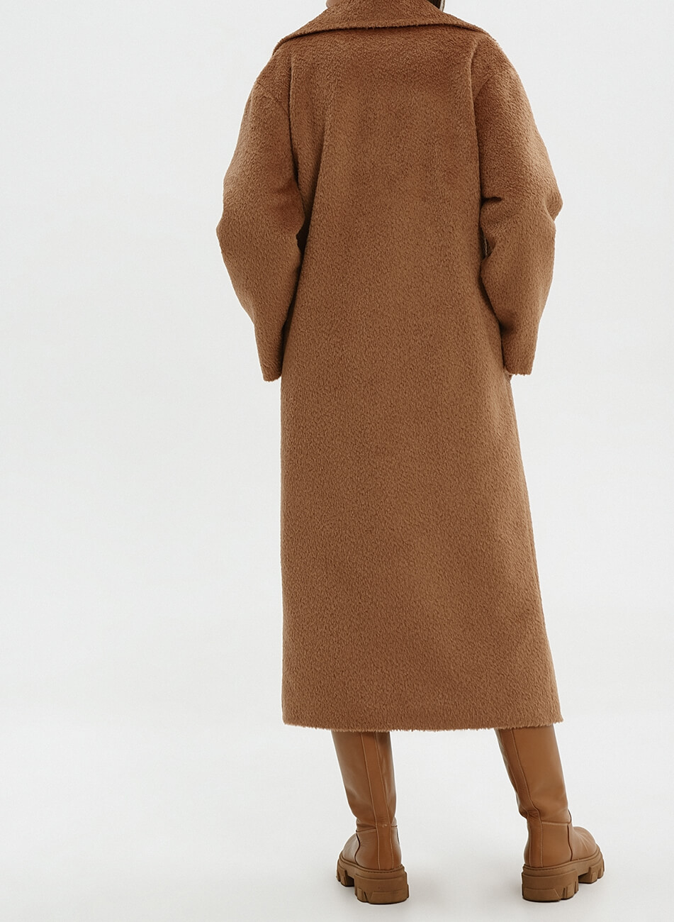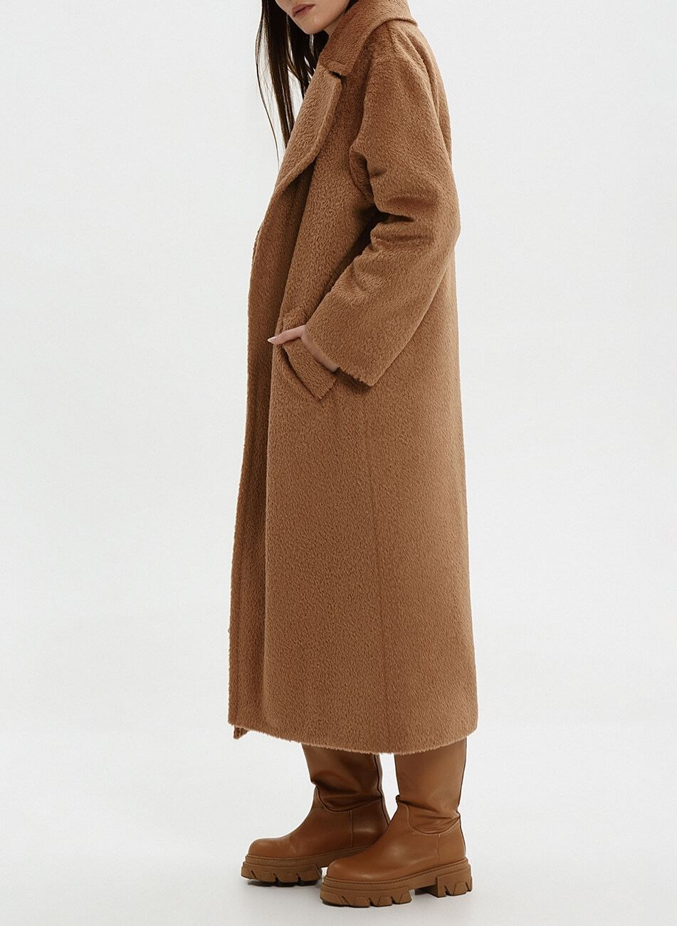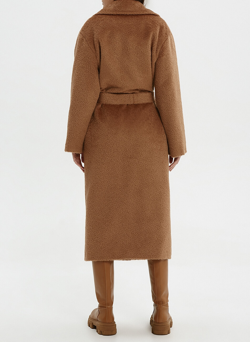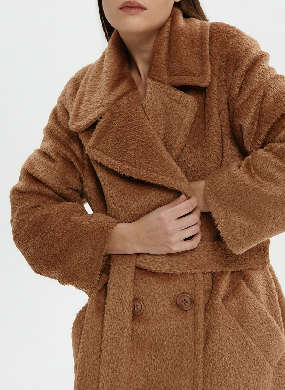 Утеплене пальто-шубка. Модель на ґудзиках, у комплекті пояс. Вовна з ворсом плюс тонкий утеплювач дають змогу носити це пальто в найхолоднішу пору року. Преміальна тканина, виготовлена на одній з найкращих італійських фабрик, зарекомендувала себе як один з найкращих естетичних і утилітарних матеріалів для пальто зимового періоду. Температурний режим пальто до -15.