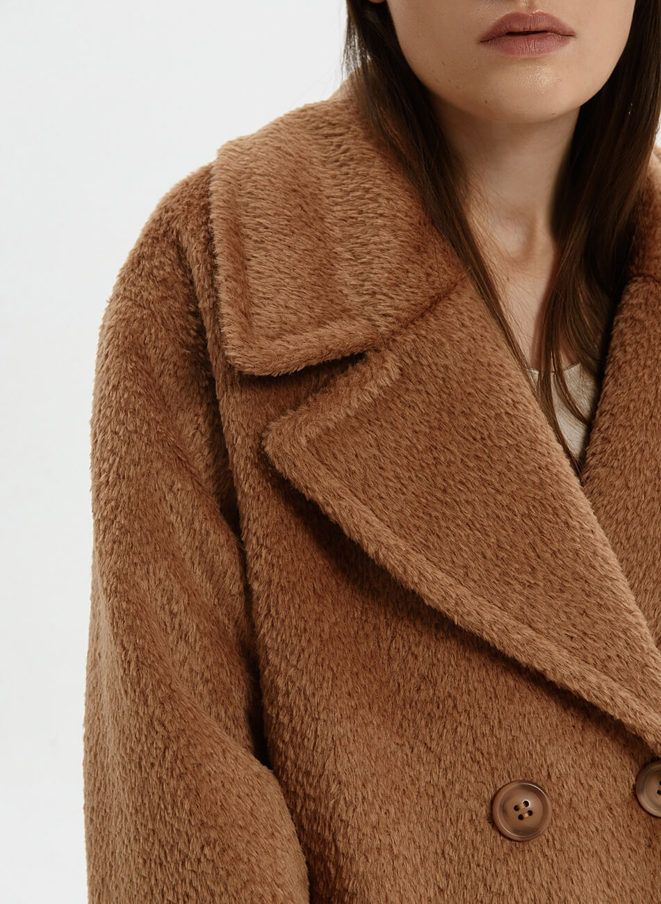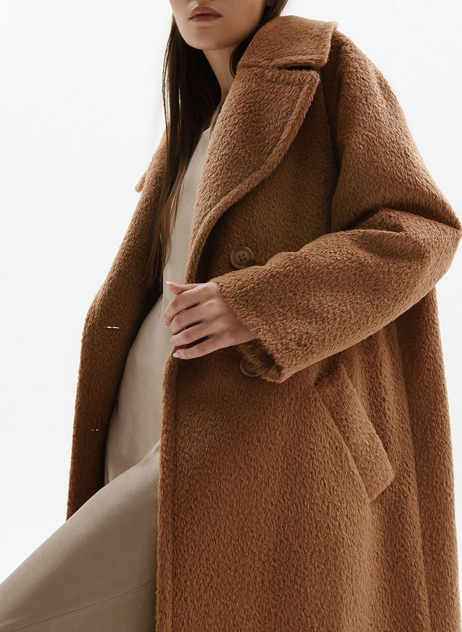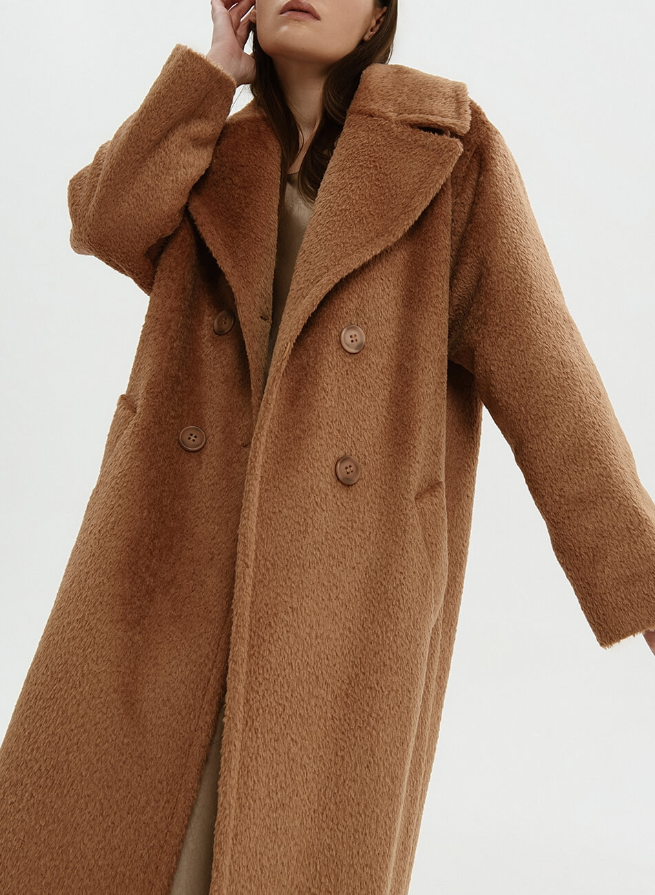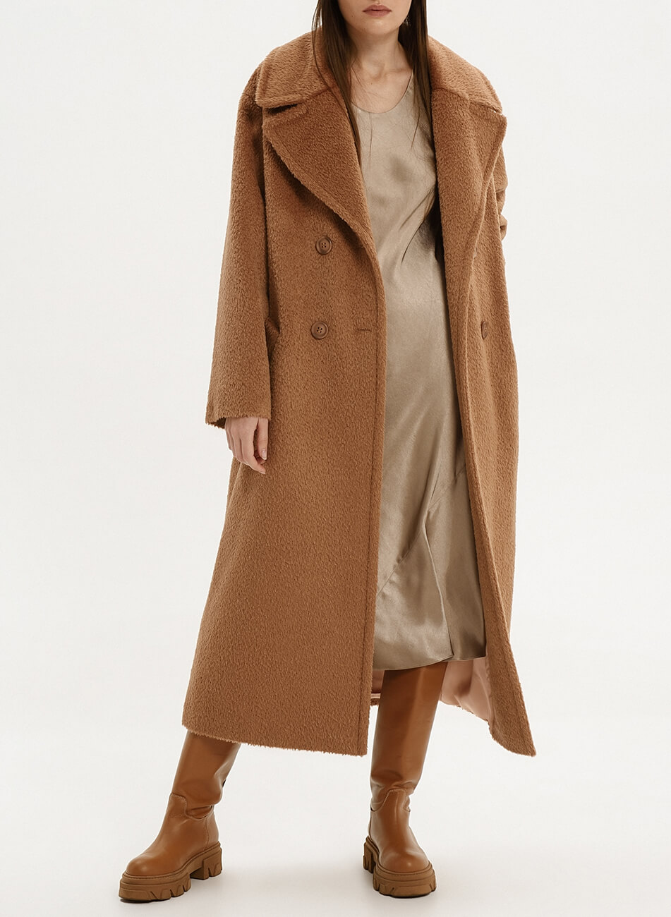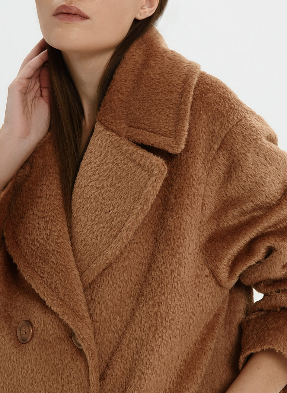 Утеплене пальто-шубка. Модель на ґудзиках, у комплекті пояс. Вовна з ворсом плюс тонкий утеплювач дають змогу носити це пальто в найхолоднішу пору року. Преміальна тканина, виготовлена на одній з найкращих італійських фабрик, зарекомендувала себе як один з найкращих естетичних і утилітарних матеріалів для пальто зимового періоду. Температурний режим пальто до -15.