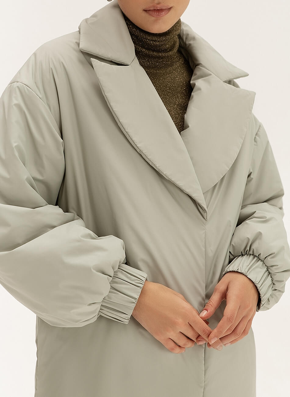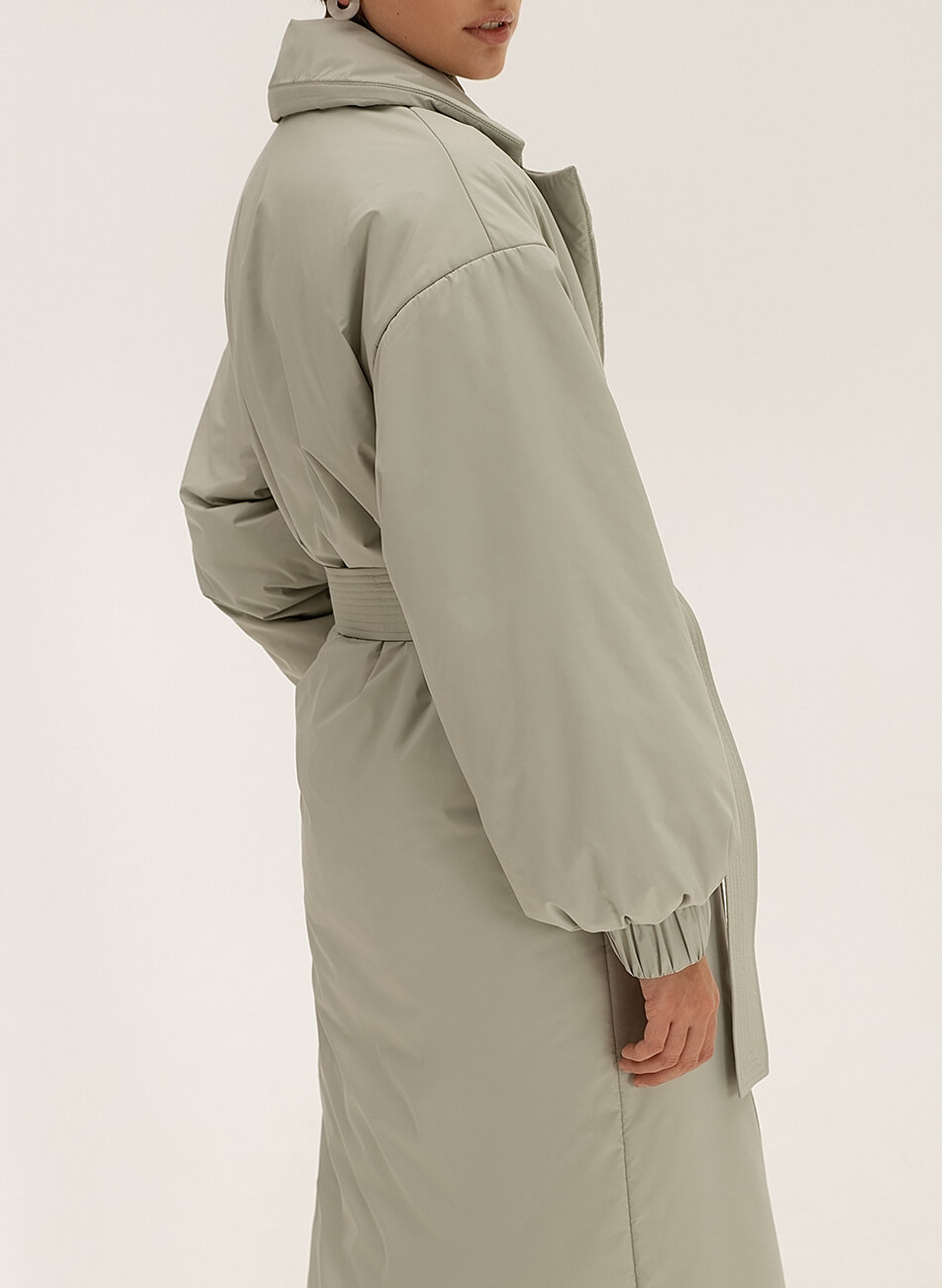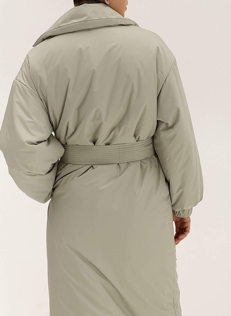 Короткий пуховик-кімоно зі стьобаної тканини вільного крою на кнопках. У комплекті пояс. Температурний режим: до -15 С Склад: Верх: плащова тканина Утеплювач: термолофт Інструкція з догляду: Машинне прання 30 С