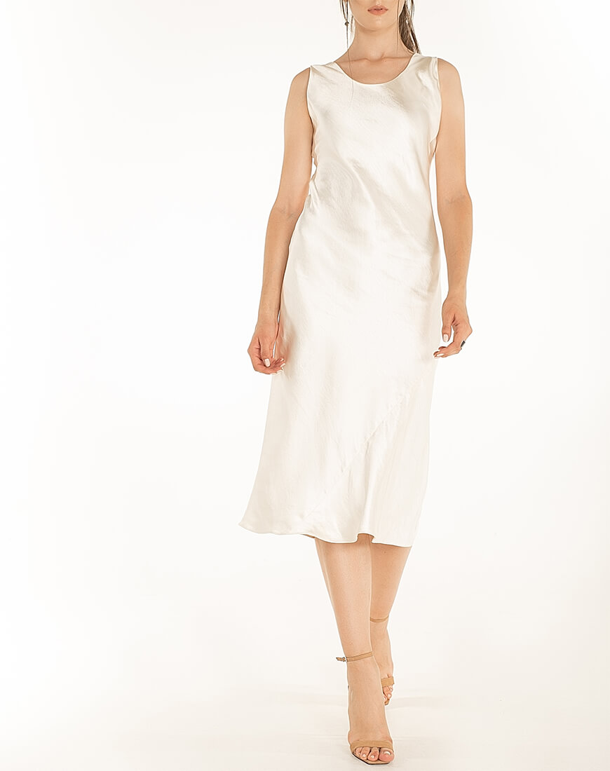Сарафан на тонких бретелях з відкритою спиною. Знімний декор на спині виконаний з коралових намистин і барокових перлів. Бретелі регульовані – максимальна довжина 49 см. Склад: Льон – 86% Поліакрил – 14% Інструкція з догляду: машинне прання за температури 30 градусів. Режим – делікатне прання, без віджимання. Прасувати можна при низьких температурах до 110 градусів. Інформація про модель: 80-58-88 см. Зріст 172 см