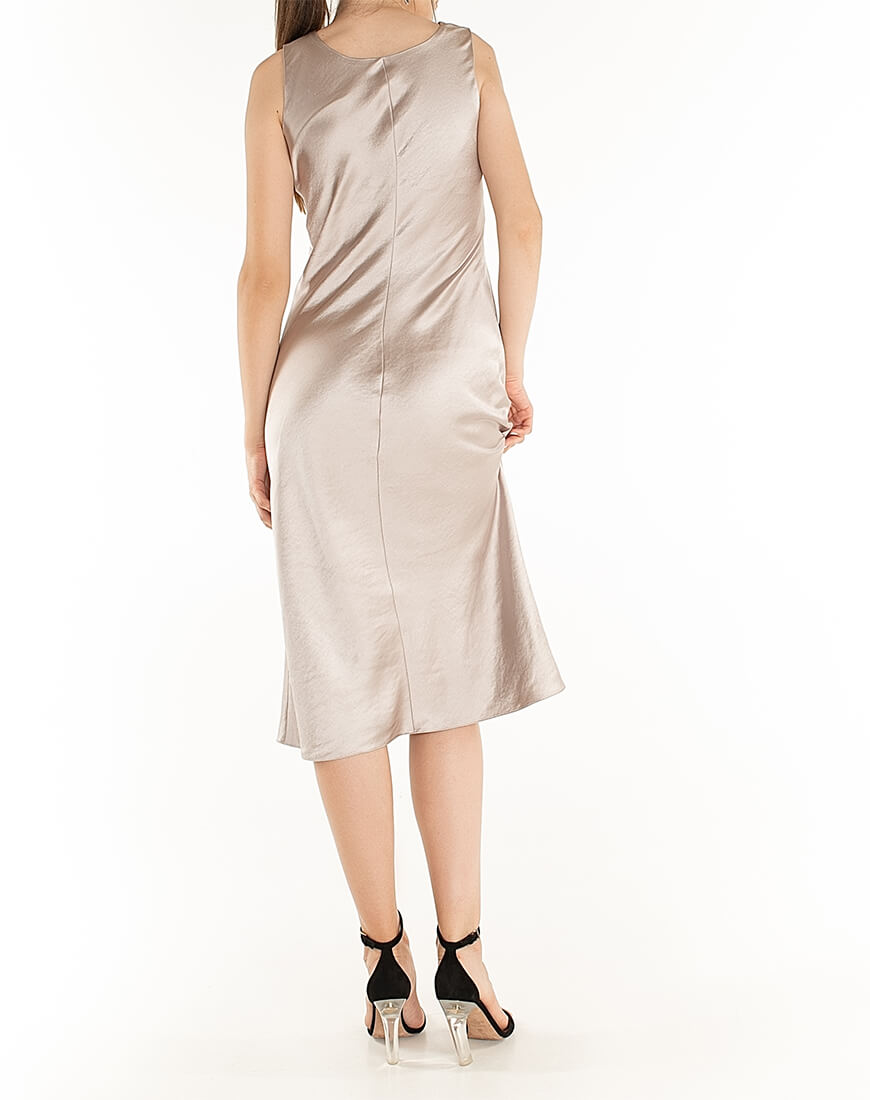 Сарафан на тонких бретелях з відкритою спиною. Знімний декор на спині виконаний з коралових намистин і барокових перлів. Бретелі регульовані – максимальна довжина 49 см. Склад: Льон – 86% Поліакрил – 14% Інструкція з догляду: машинне прання за температури 30 градусів. Режим – делікатне прання, без віджимання. Прасувати можна при низьких температурах до 110 градусів. Інформація про модель: 80-58-88 см. Зріст 172 см