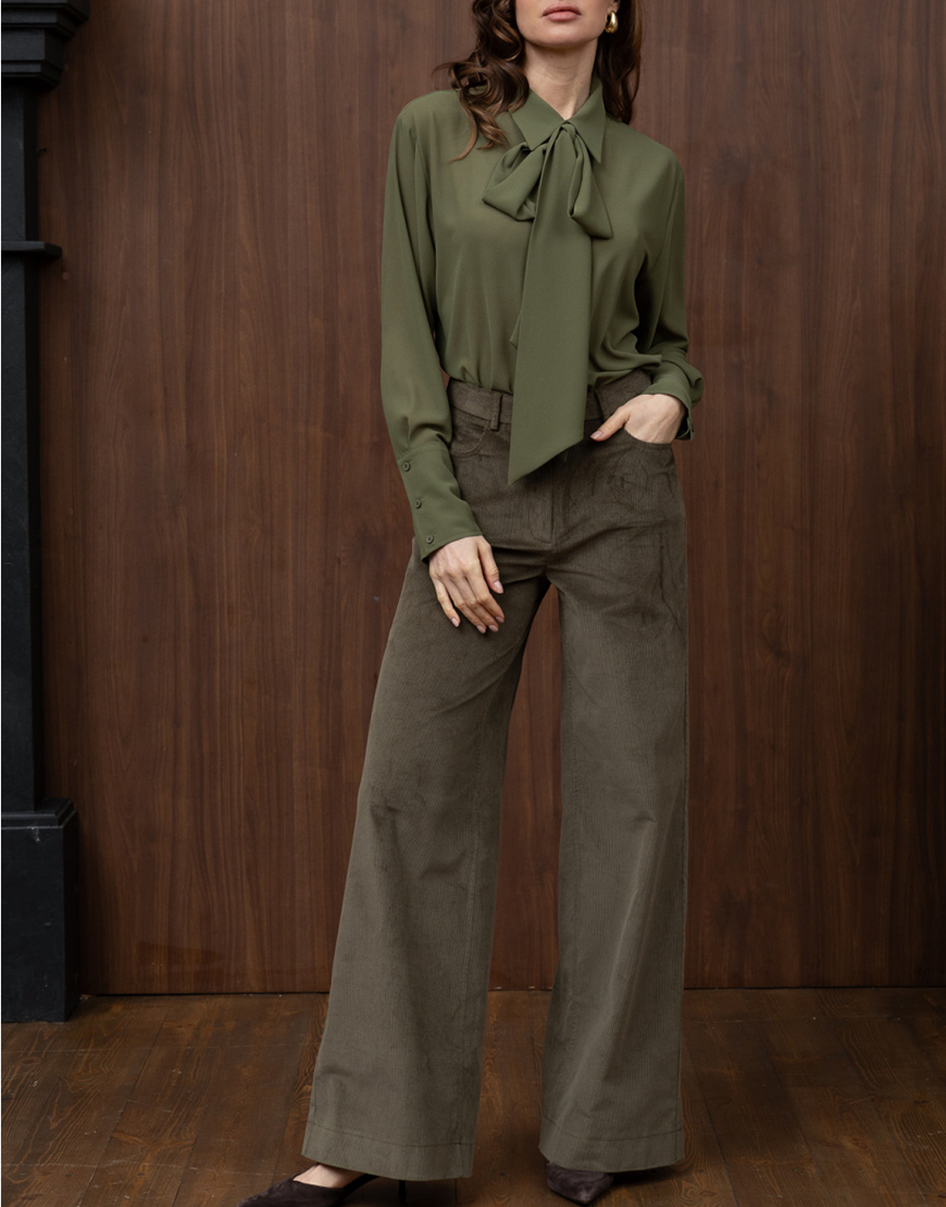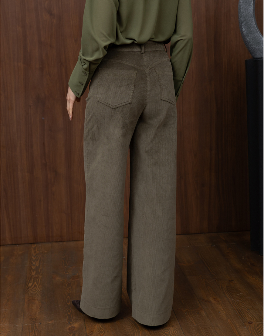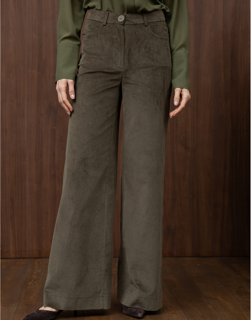 Широкі брюки з вельвету з високою посадкою. Брюки оздоблені кишенями спереду та ззаду.