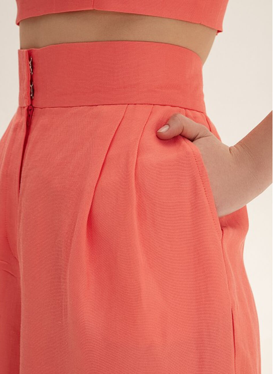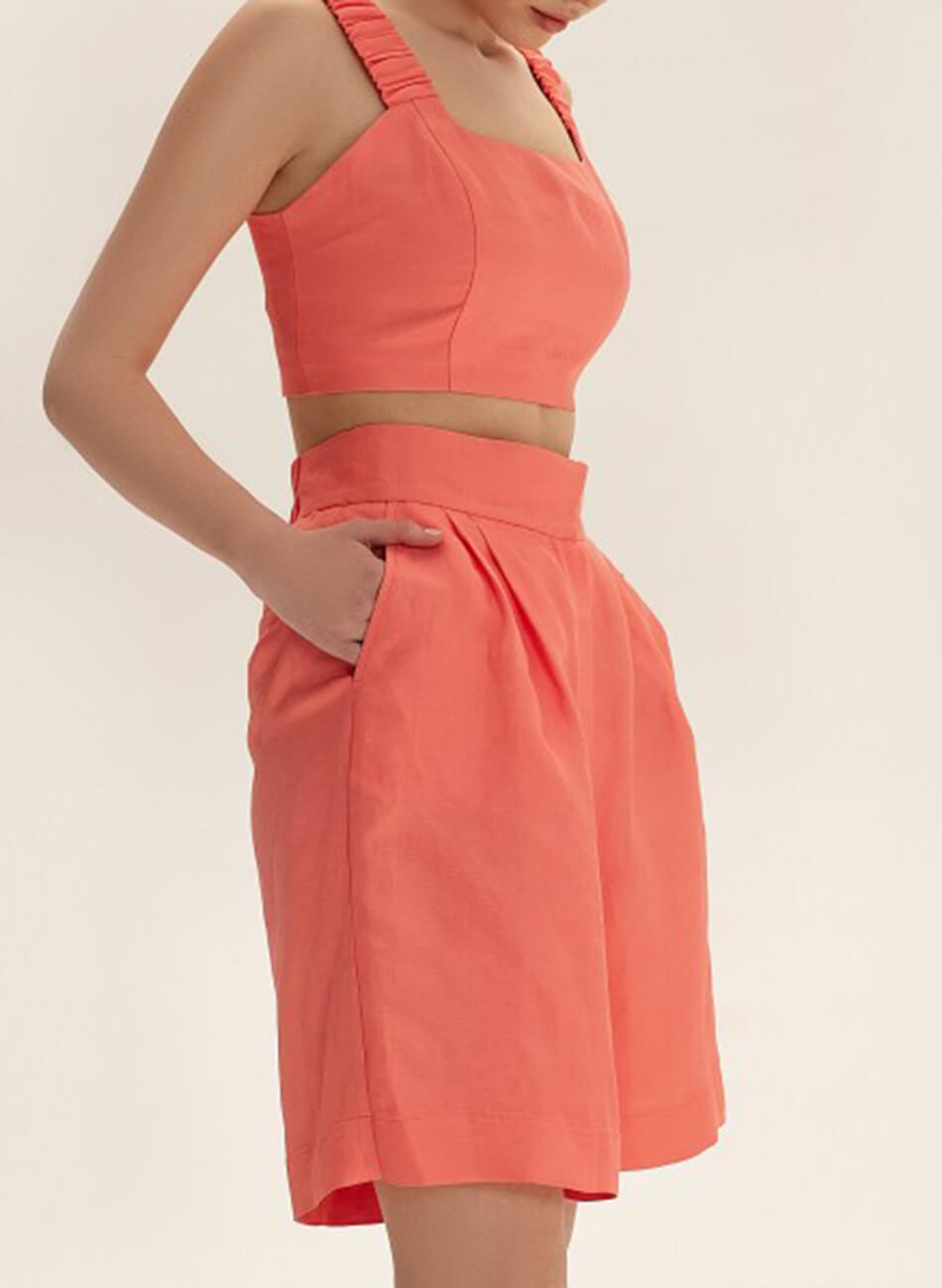 Лляні шорти-бермуди з кишенями. Модель комплектується топами і піджаком з колекції SS21 Склад: 70% льон, 30% віскоза Інструкція з догляду: Машинне прання 30С. Прасування праскою виключно на низькій температурі. Інформація про модель: На моделі розмір: S.