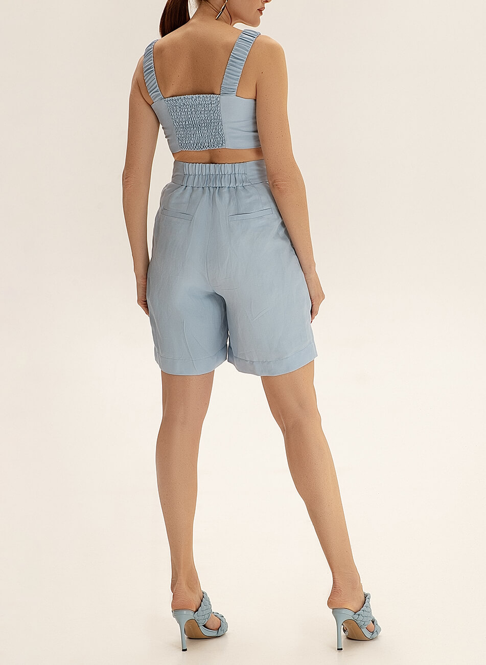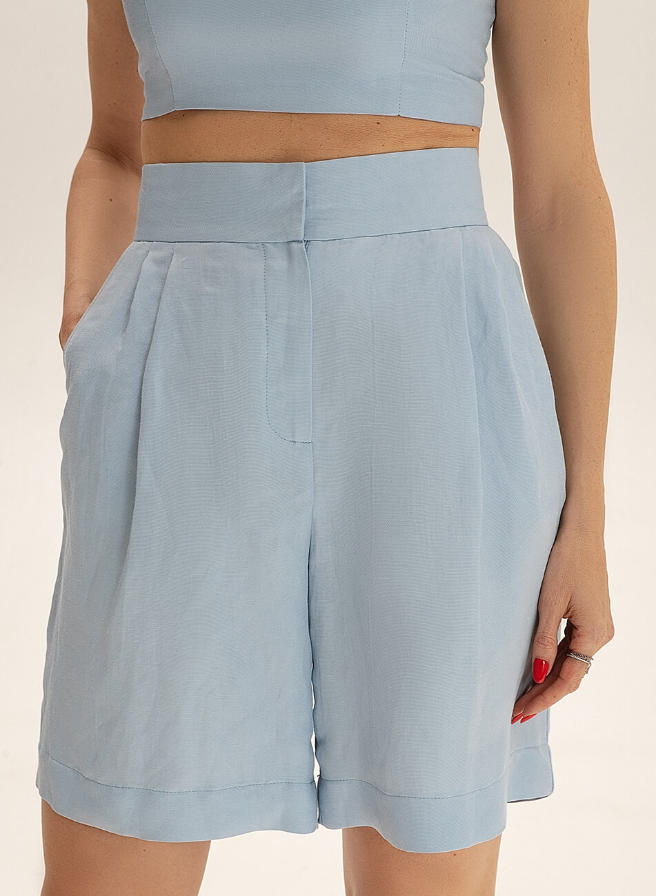 Лляні шорти-бермуди з кишенями. Модель комплектується топами і піджаком з колекції SS21 Склад: 70% льон, 30% віскоза Інструкція з догляду: Машинне прання 30С. Прасування праскою виключно на низькій температурі. Інформація про модель: На моделі розмір: S.