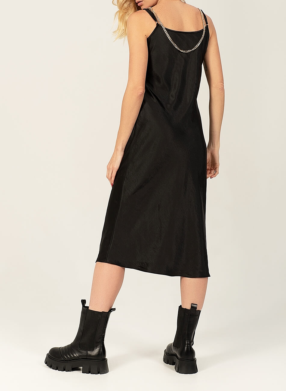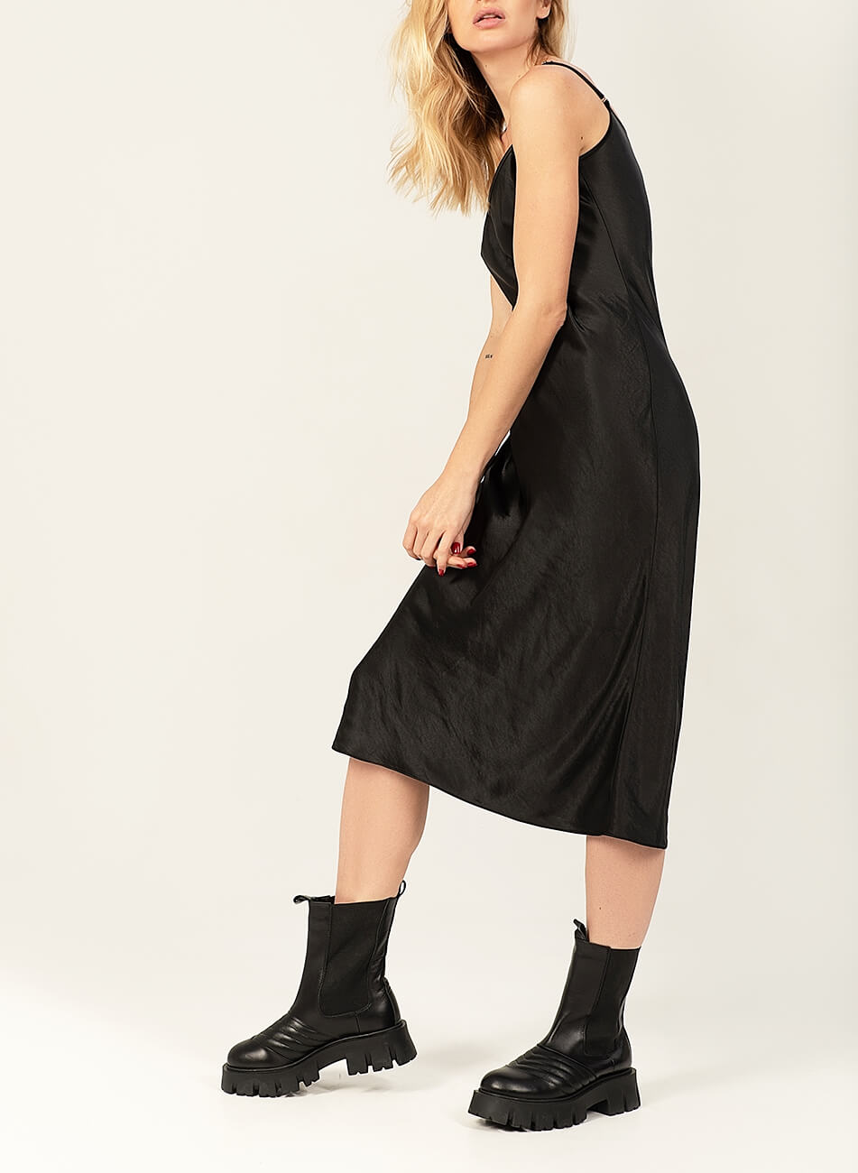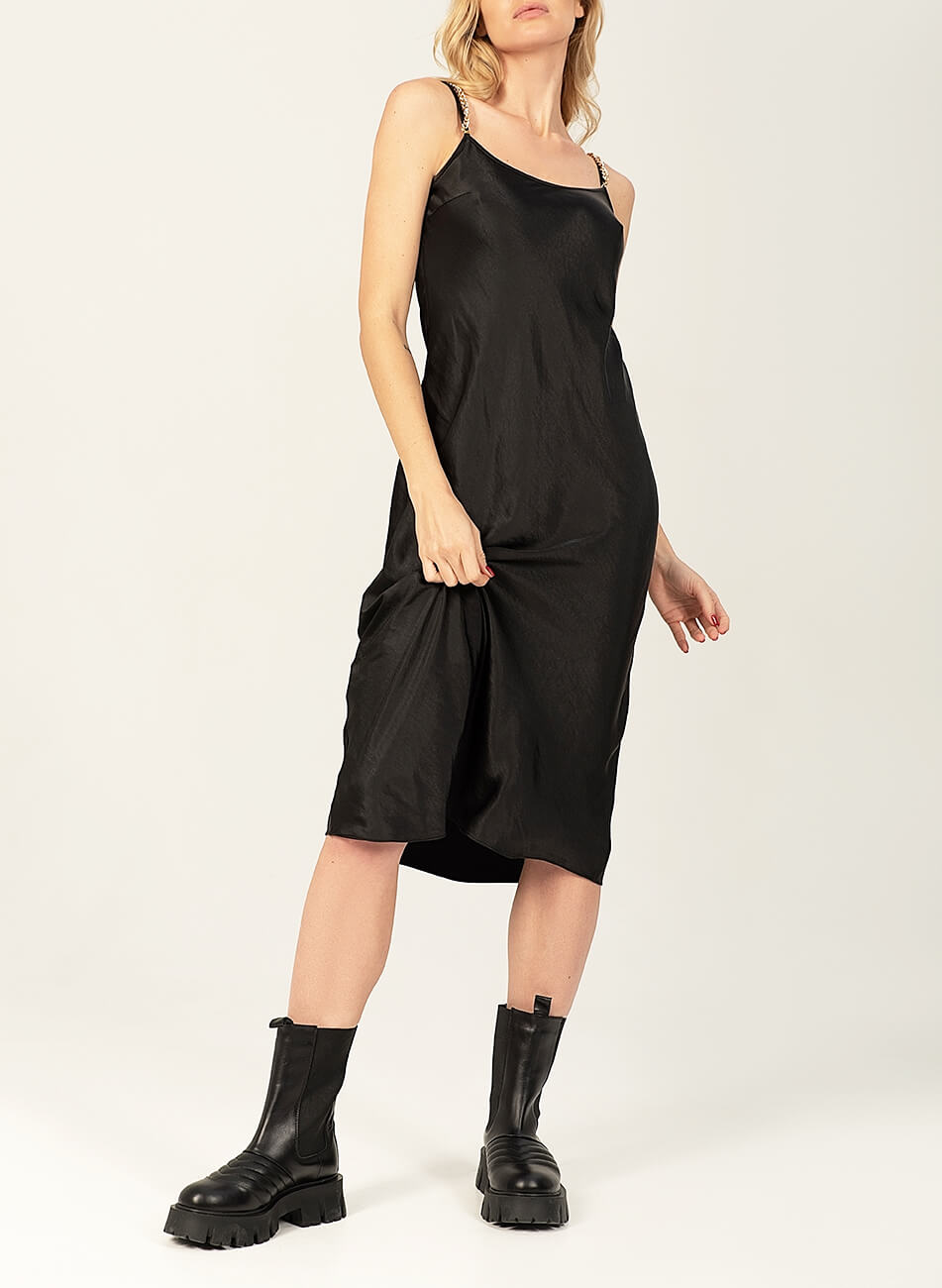 Струмлива сатинова sleep dress на тонких бретелях. Структура і щільність матеріалу допомагає підкреслювати і коригувати фігуру. Додатково в комплекті знімний декор “дощ”. Sleep dress можливо використовувати, як в образах у стилі casual, а так і у вечірніх завдяки знімному декору.