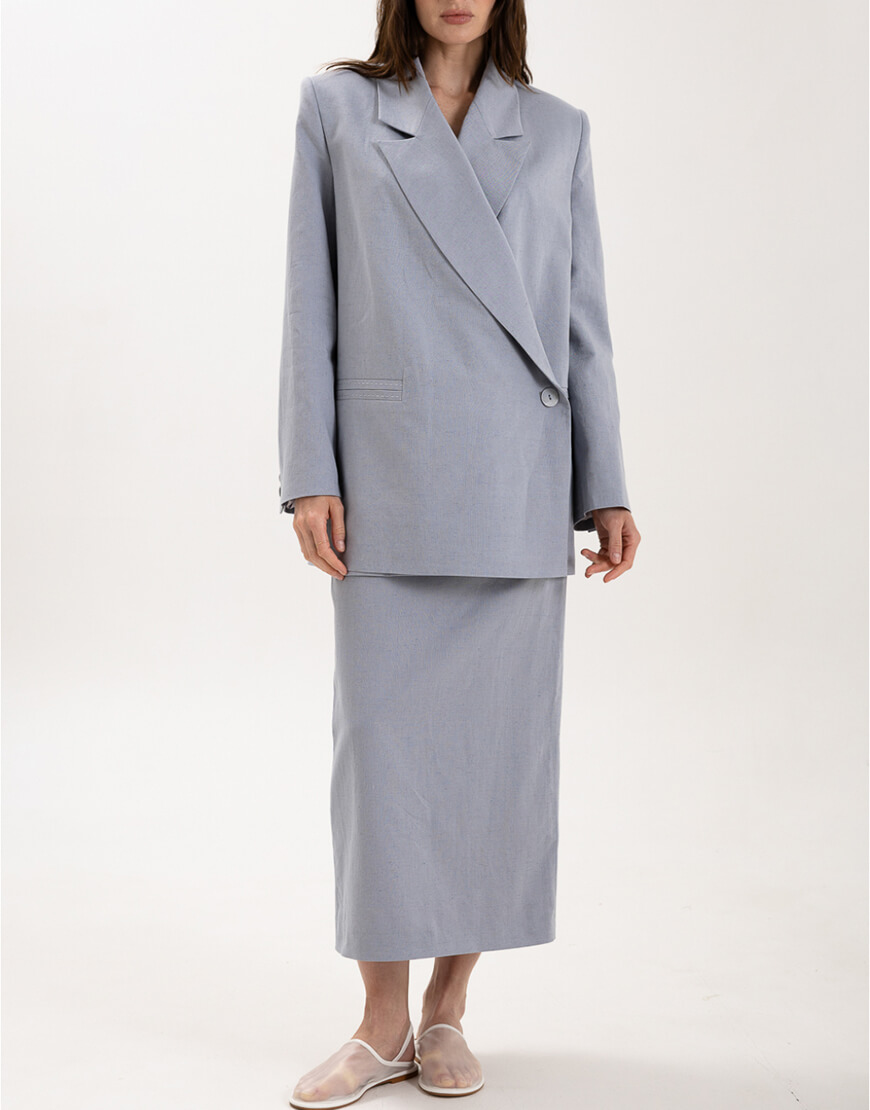 В якості плечового виробу може бути доповнена жакетами, жилетами та сорочкою з колекції Summer 2024.