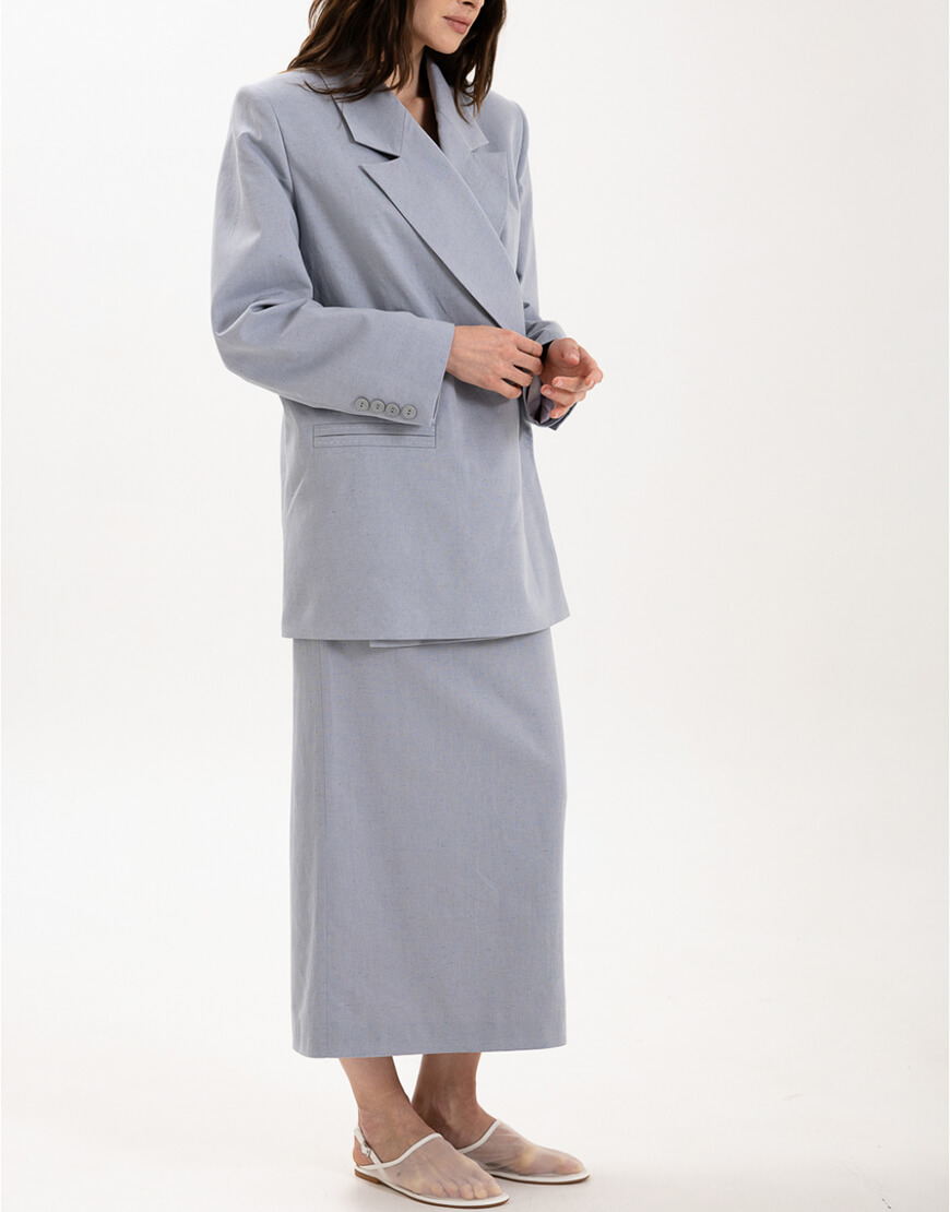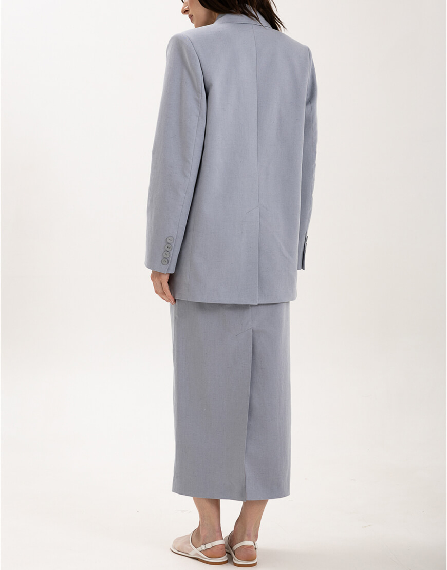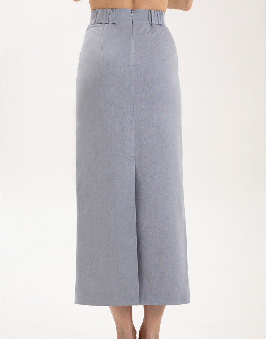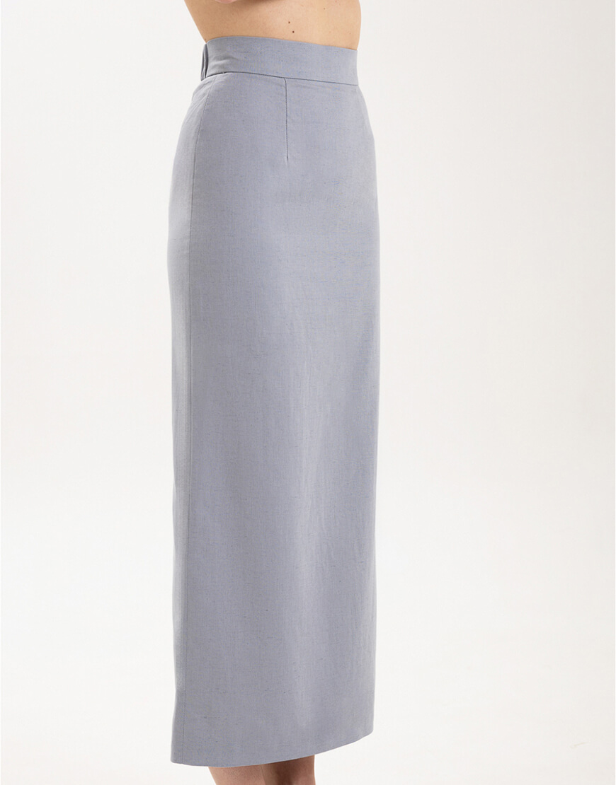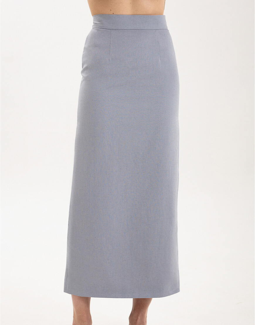 Міді-спідниця з іспанського льону з додаванням бавовни прямого крою зі шліцею. Спідниця має підкладку.