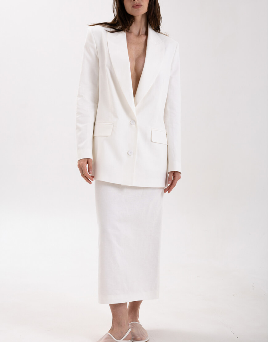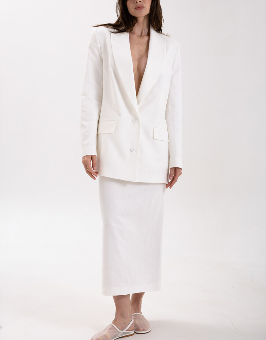 В якості плечового виробу може бути доповнена жакетами, жилетами та сорочкою з колекції Summer 2024.