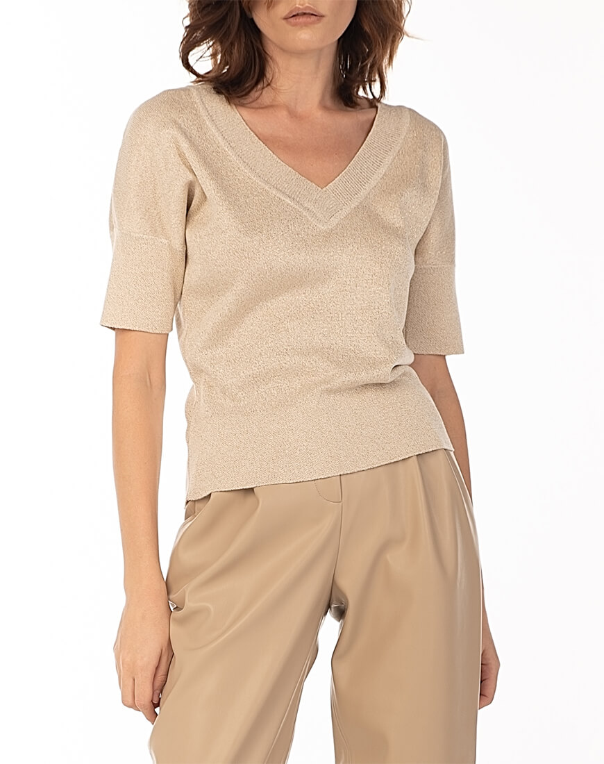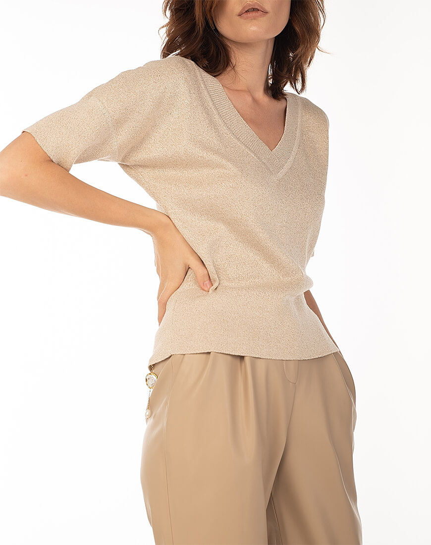 Трикотажний топ з V-подібним вирізом з італійської пряжі з люрексом.