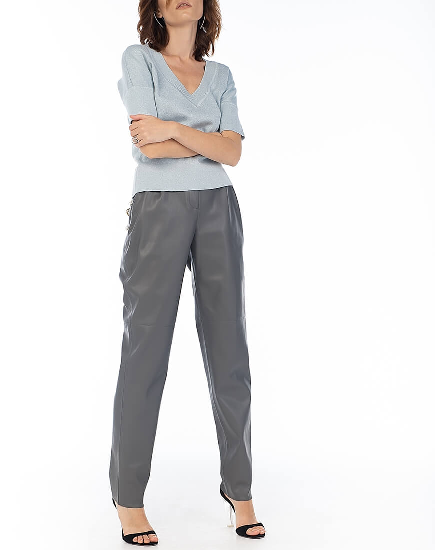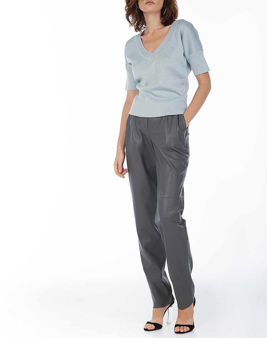 Трикотажний топ з V-подібним вирізом з італійської пряжі з люрексом.
