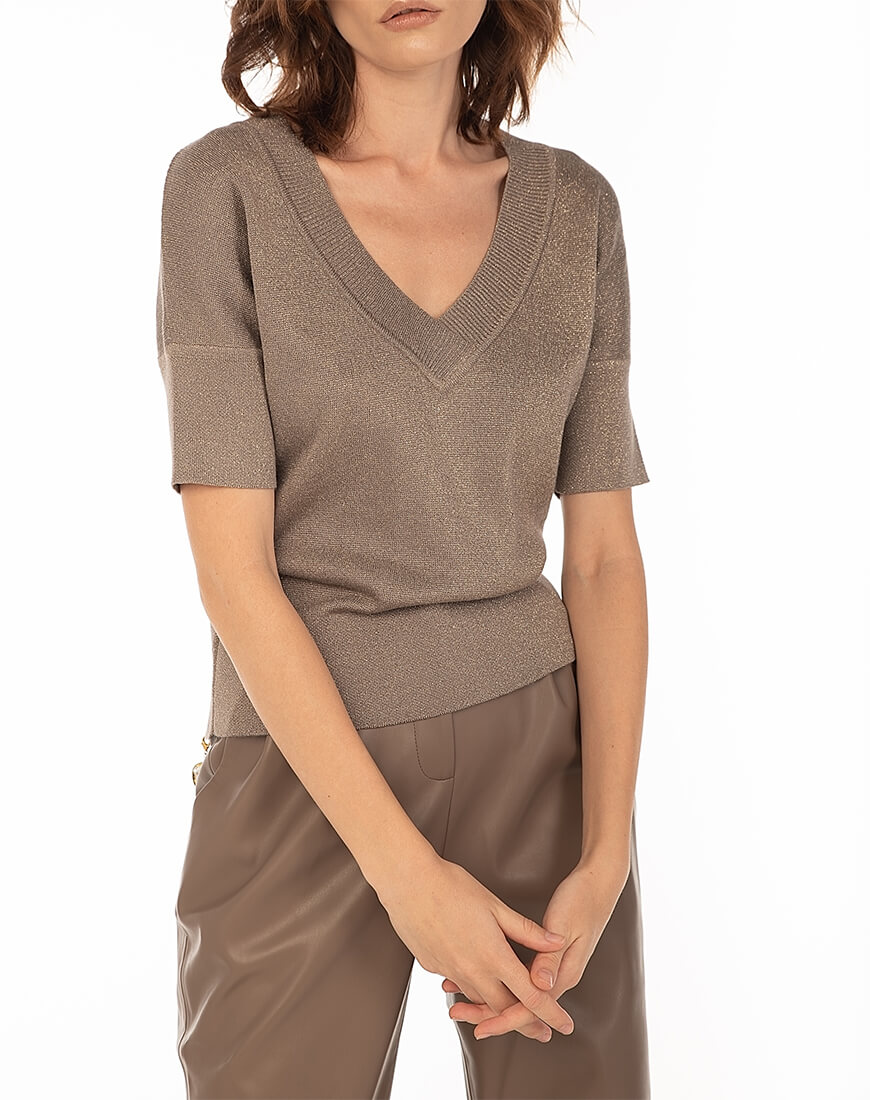 Трикотажний топ з V-подібним вирізом з італійської пряжі з люрексом.