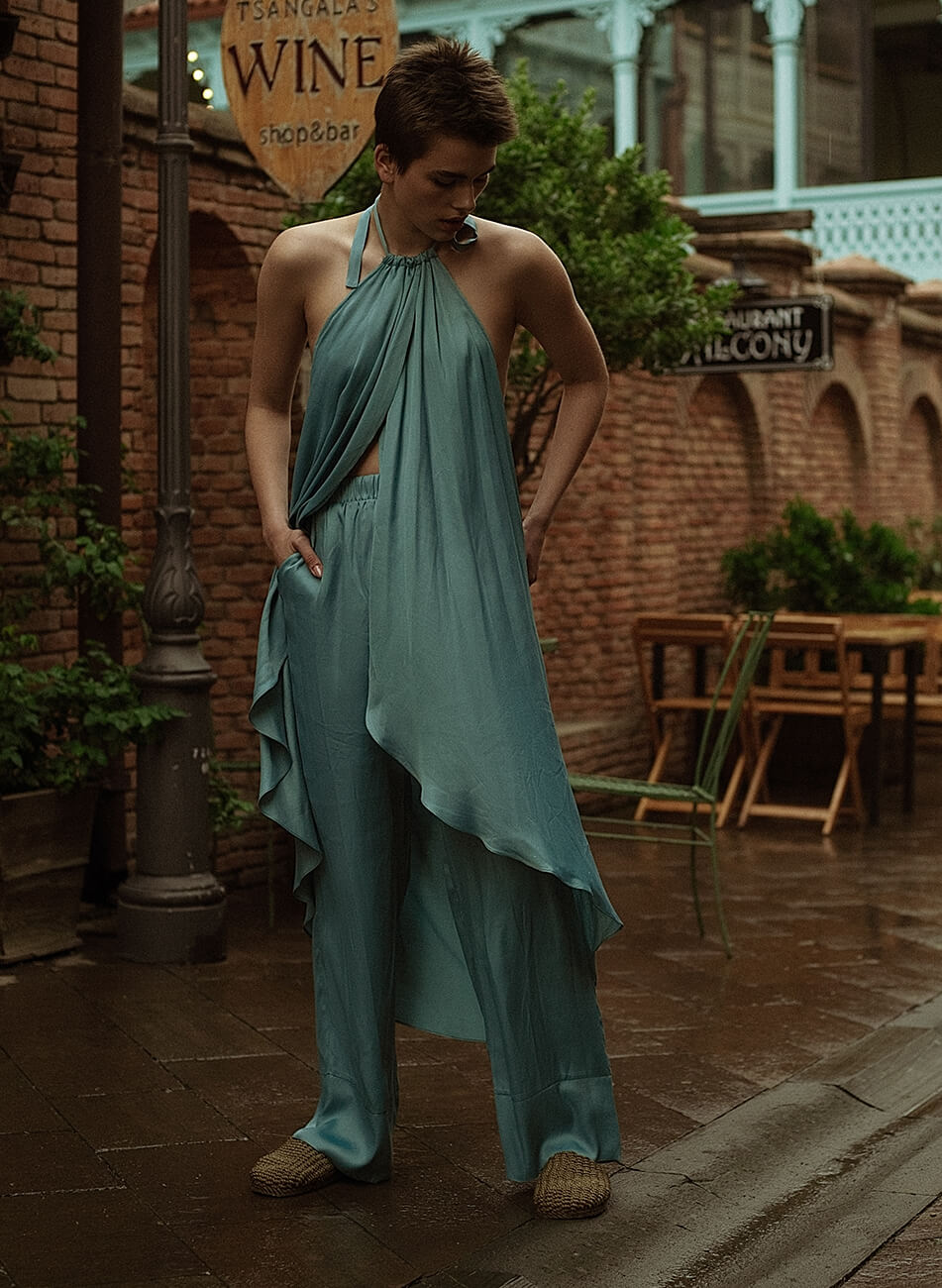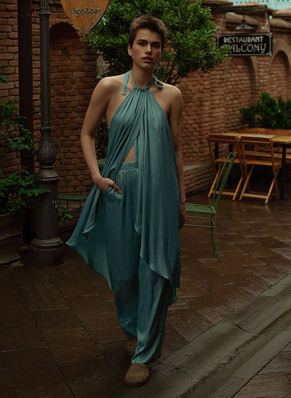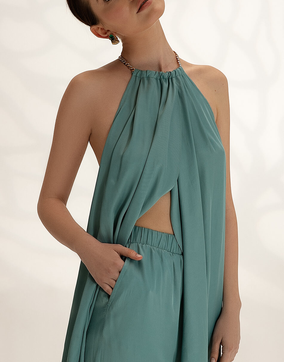 Пляжна туніка з ланцюгом. Пляжний варіант носіння може змінитися на міський, якщо додати до туніки легкі штани вільного крою.