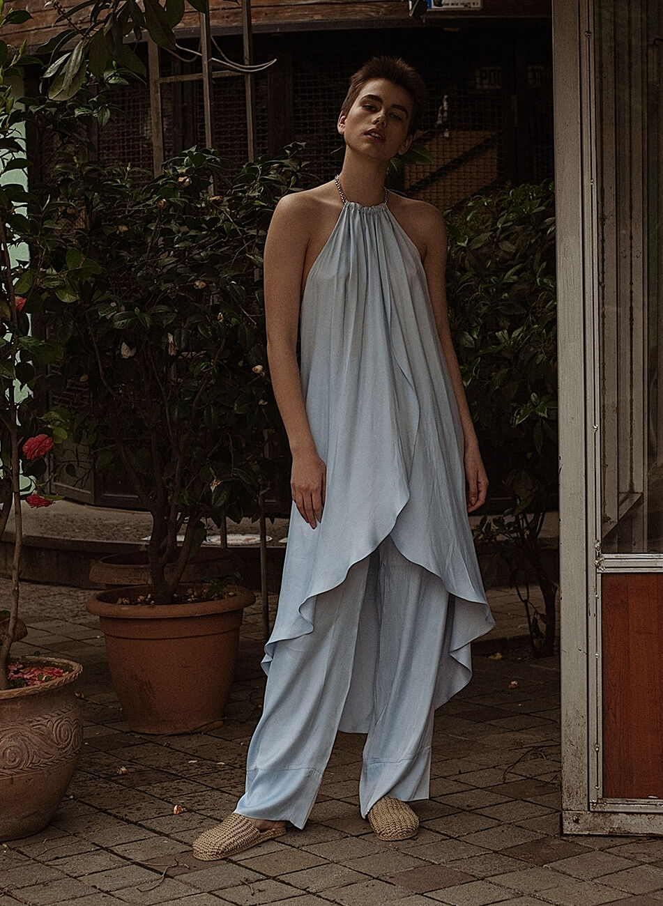 Пляжна туніка з ланцюгом. Пляжний варіант носіння може змінитися на міський, якщо додати до туніки легкі штани вільного крою.